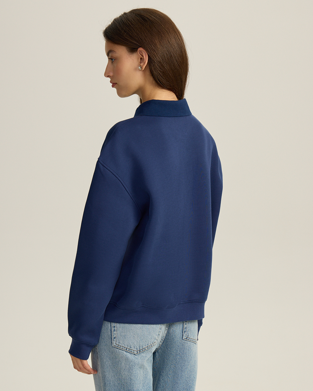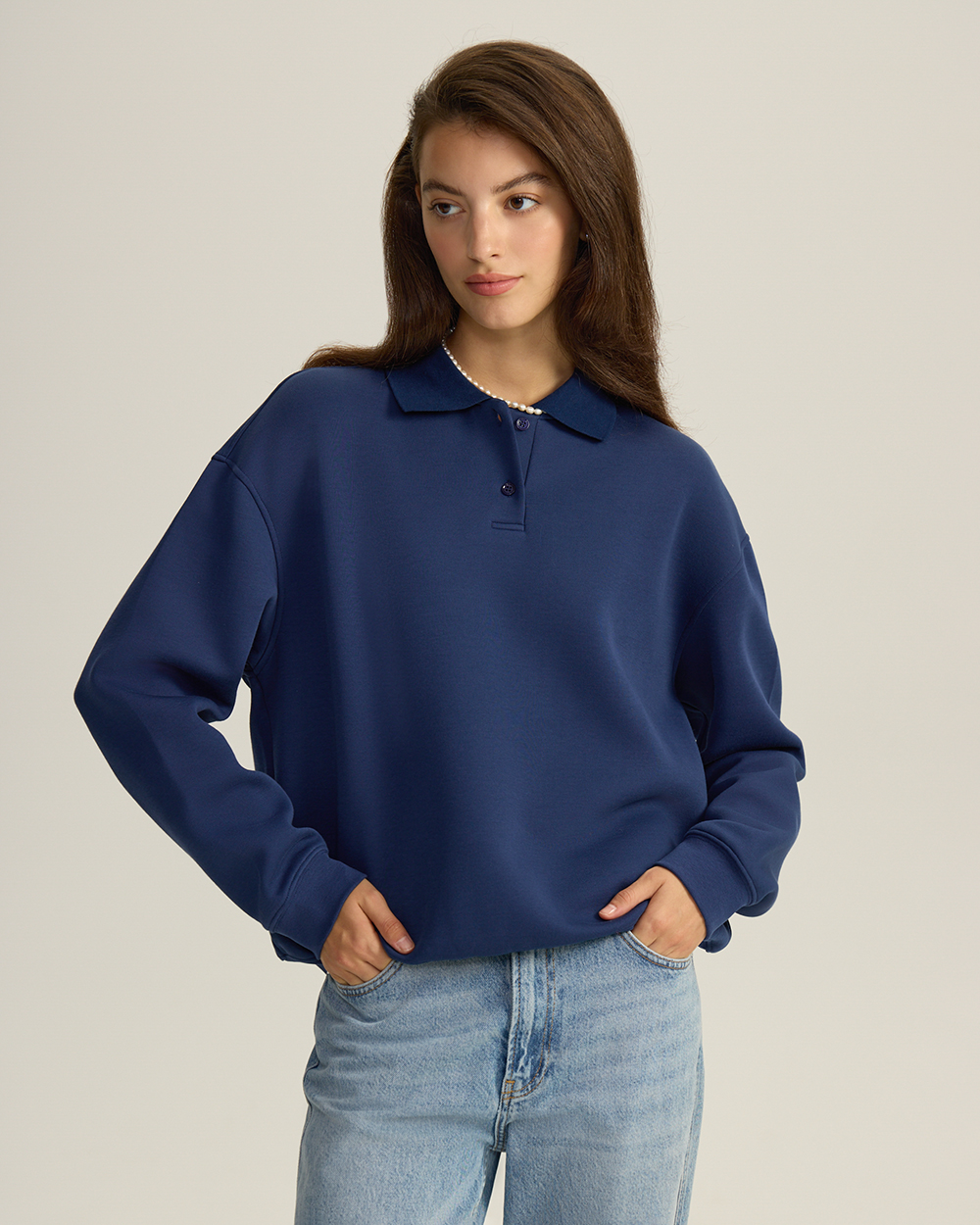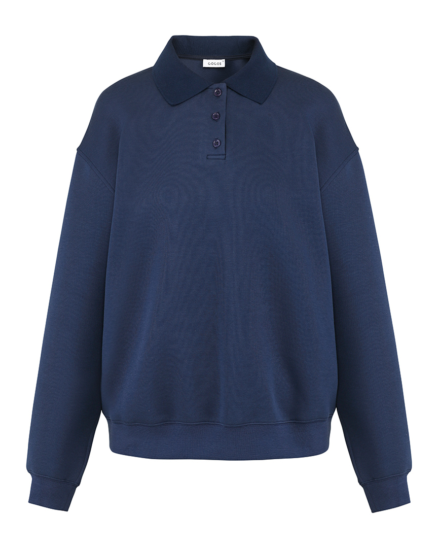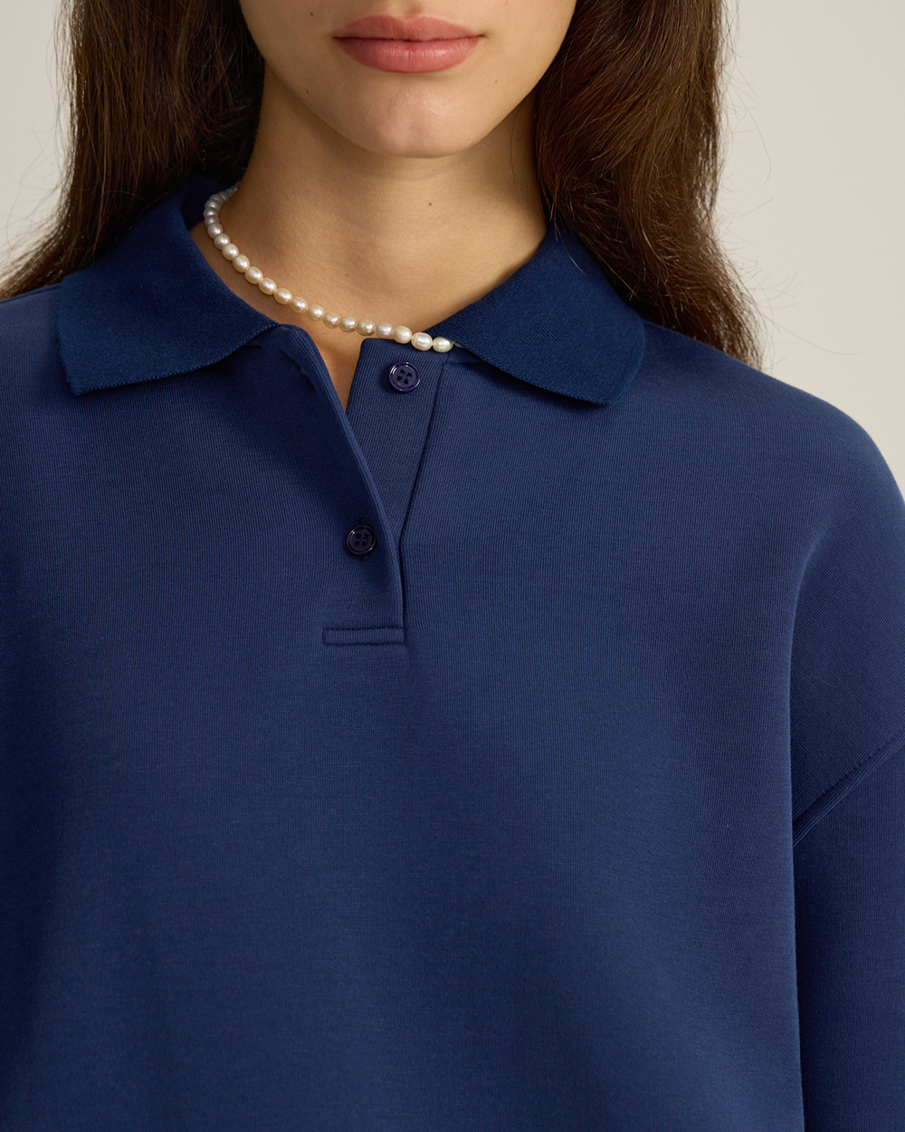 Футболки поло давно являются классикой и базой гардероба, но в последнее время подиумный тренд на воротник поло находит воплощение в самых разных формах. В этом сезоне предлагаем объемный свитшот с воротником поло, который можно дополнить джоггерами для комплекта.