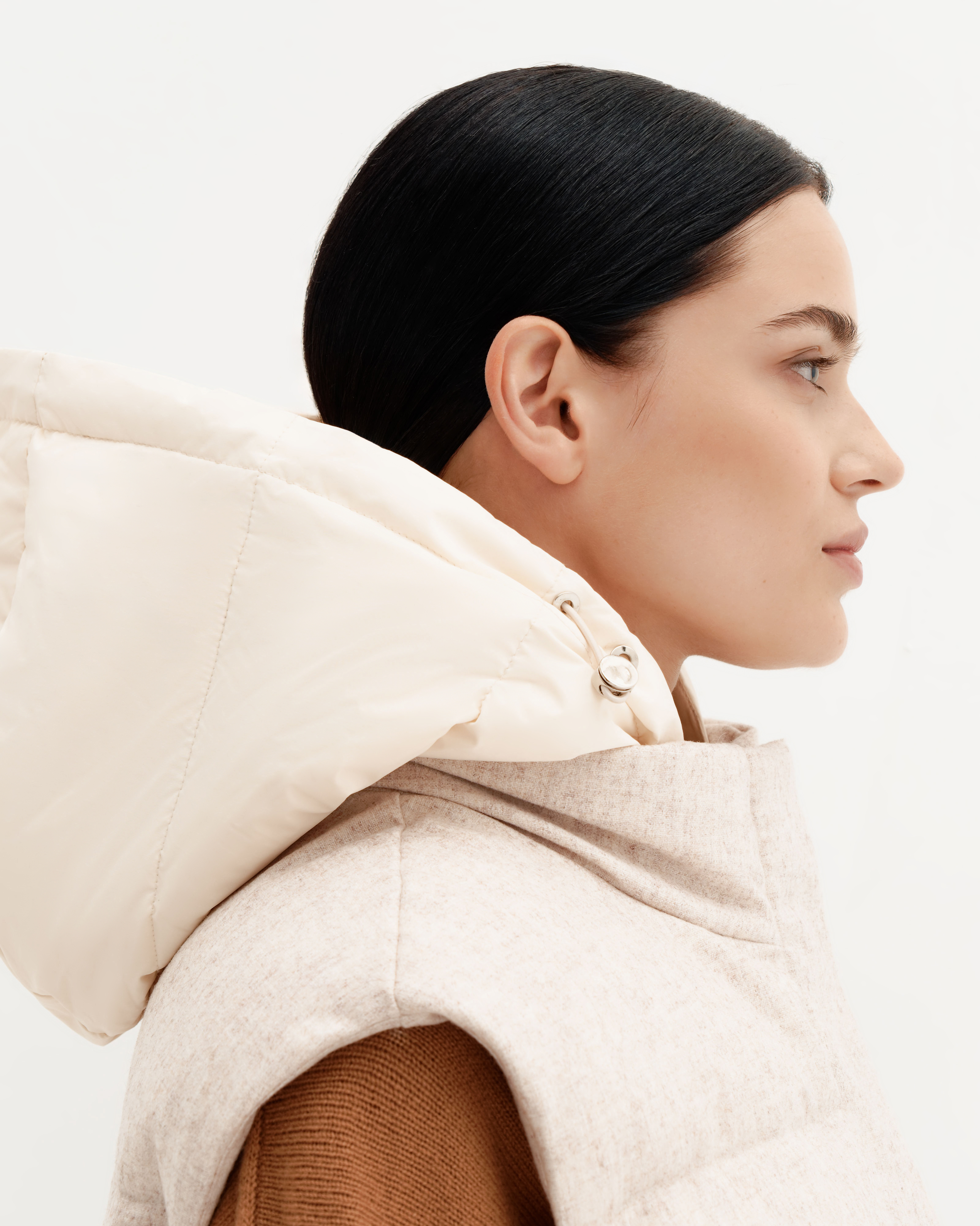 Жилет из пальтовой ткани, с отстегивающимся капюшоном, светло-бежевый
