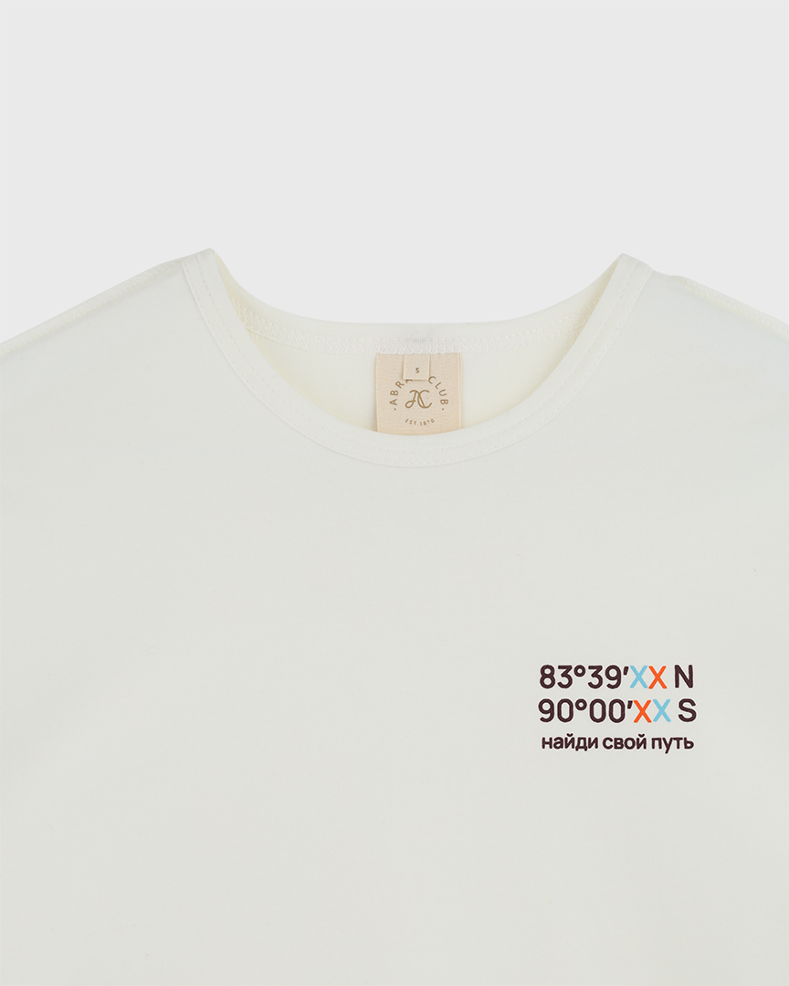 В капсуле — футболка, лонгслив и ароматическая свеча, созданные ограниченным тиражом. В основе дизайна — координаты северной и южной точек суши (83°39′ N и 90°00′ S), ставшие метафорой широты возможностей. Часть координат заменена символами «ХХ» — напоминание о том, что путь каждого уникален и только начинается.