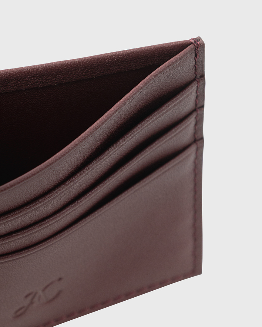 Функциональный кардхолдер с 6 отделениями для карт и карманом для сложенных банкнот или чеков. Из фактурной, мягкой натуральной кожи винного оттенка, с тиснением монограммы Аbrau Сlub. Можно собрать комплект с обложкой для паспорта в том же оттенке.