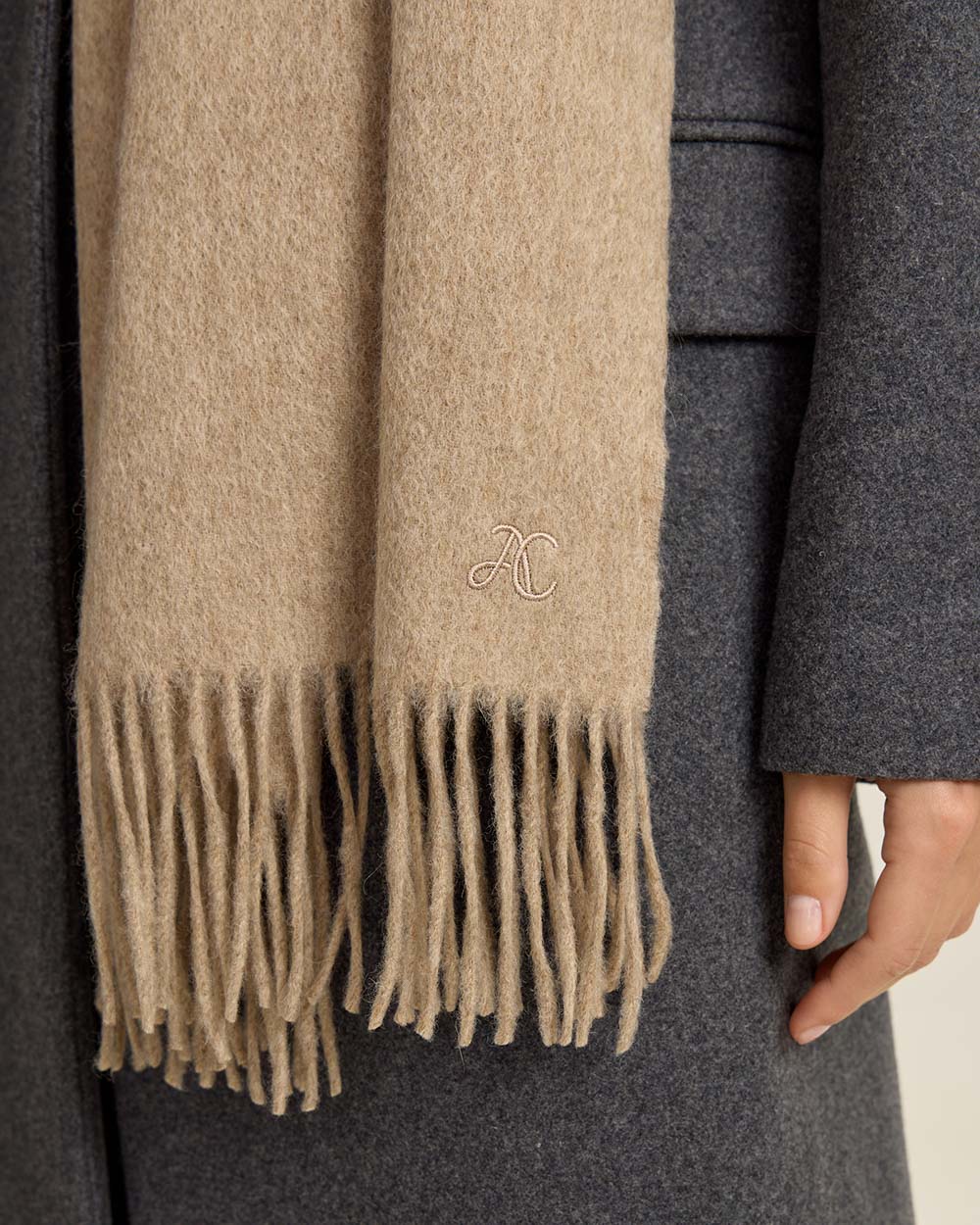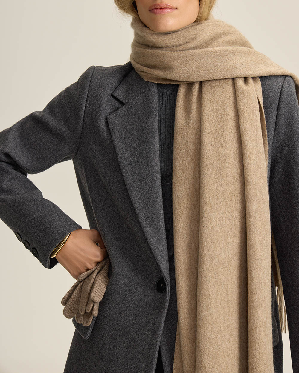 Палантин из шерсти, бежевый меланж