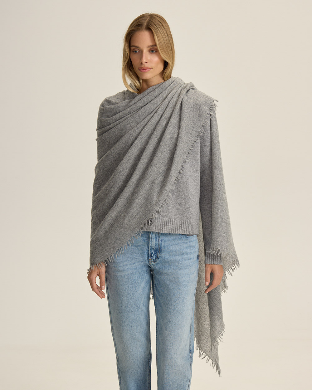 Палантин из мягкой невесомой пряжи из шерсти и кашемира первоклассного качества, с выполненной вручную бахромой по краям. Гармонично дополнит зимние образы, подойдет к шапкам, капорам, перчаткам и носочкам из шерсти и кашемира.
