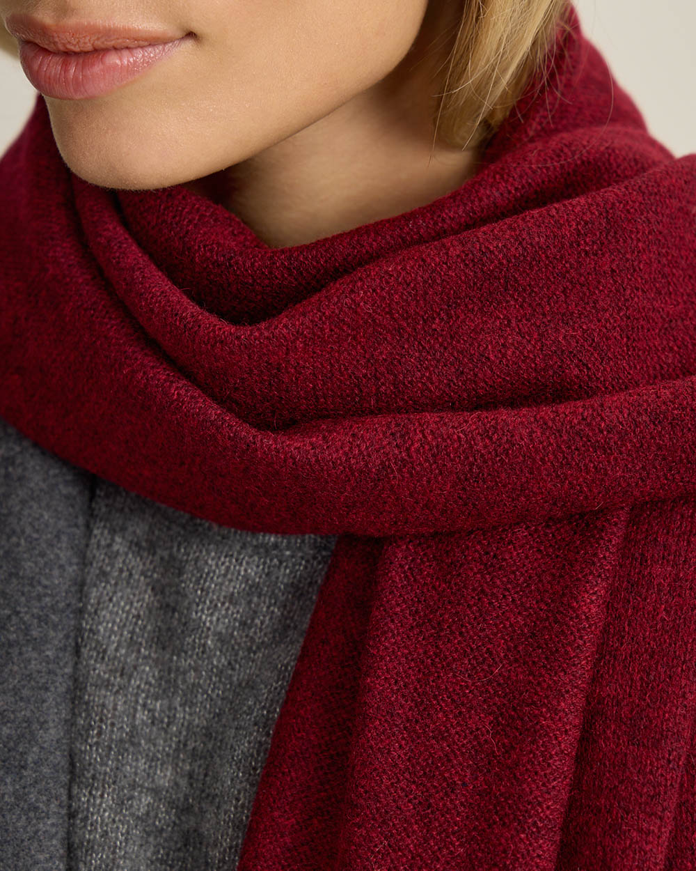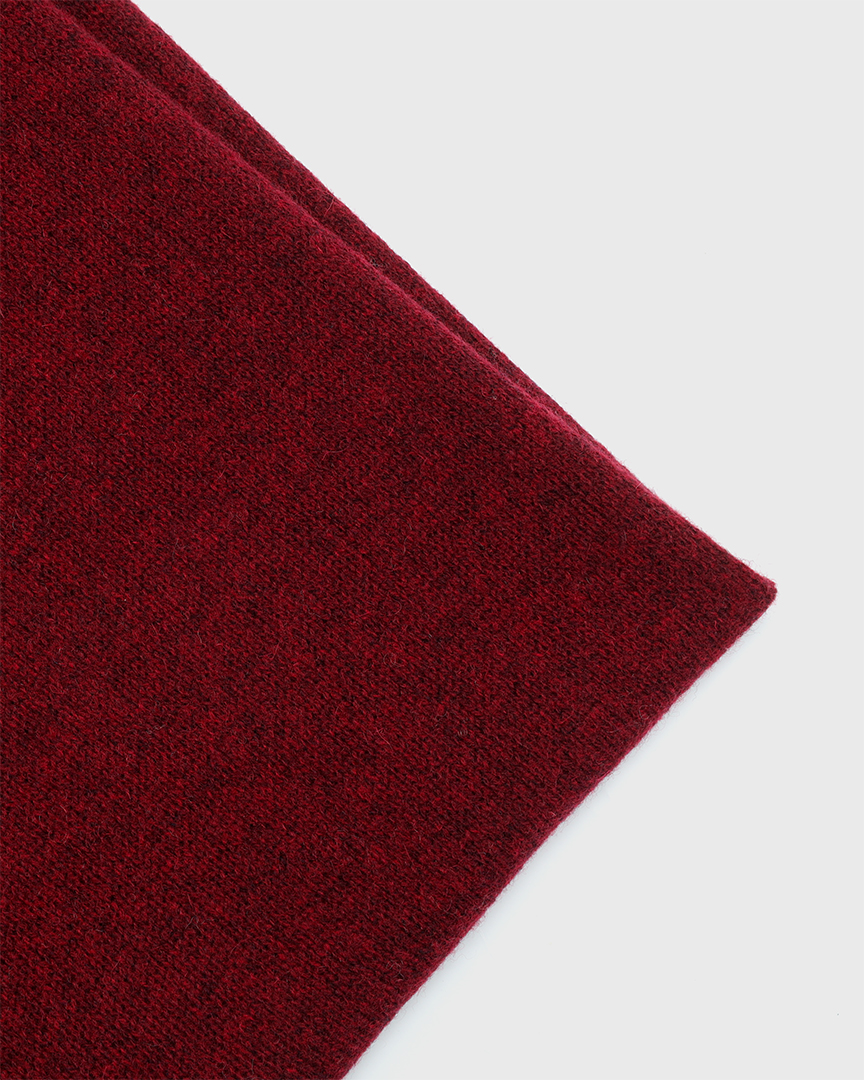 Широкий и длинный трикотажный шарф из шерсти и кашемира первоклассного качества. с вышивкой монограммы Abrau Club Подойдет как мужчинам, так и женщинам. Фирменный винный оттенок станет стильным акцентом. Образ можно дополнить шапкой “бини”, а также носками из шерсти и кашемира с вышивкой "елочка".