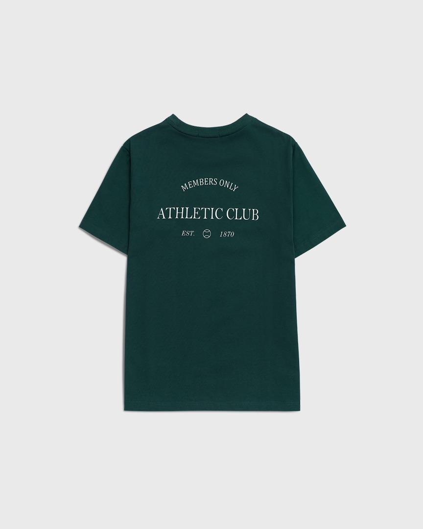 Футболка унисекс из плотного 100% хлопка. Прямой крой. Спереди вышивка AC (монограмма Abrau Club), на спинке принт — Athletic Club.