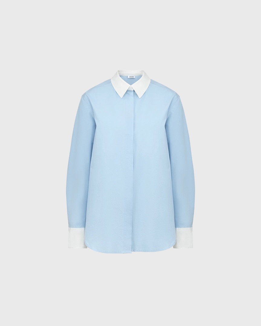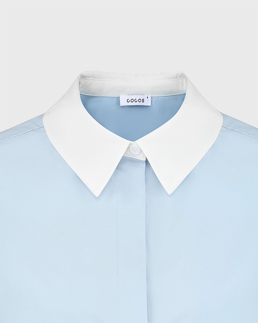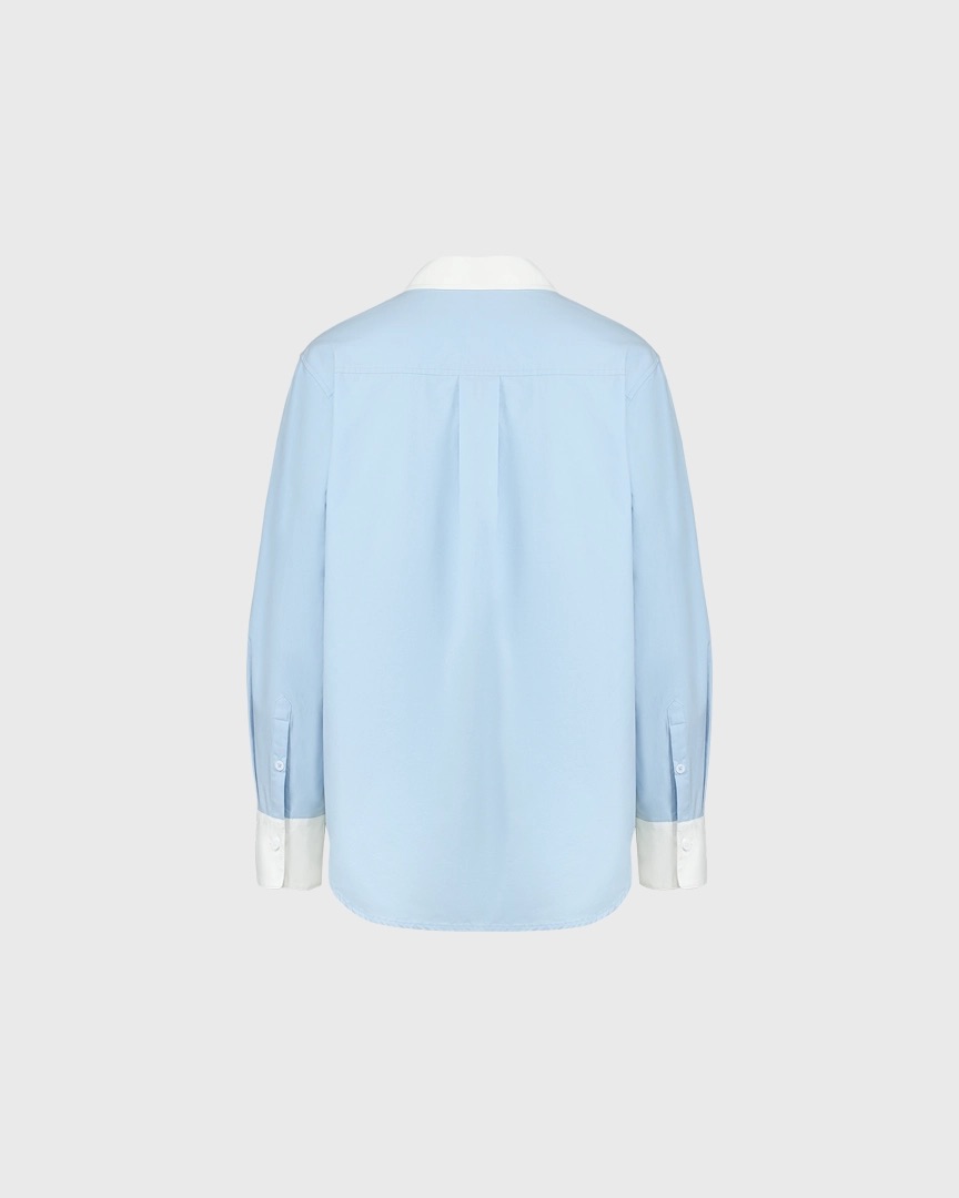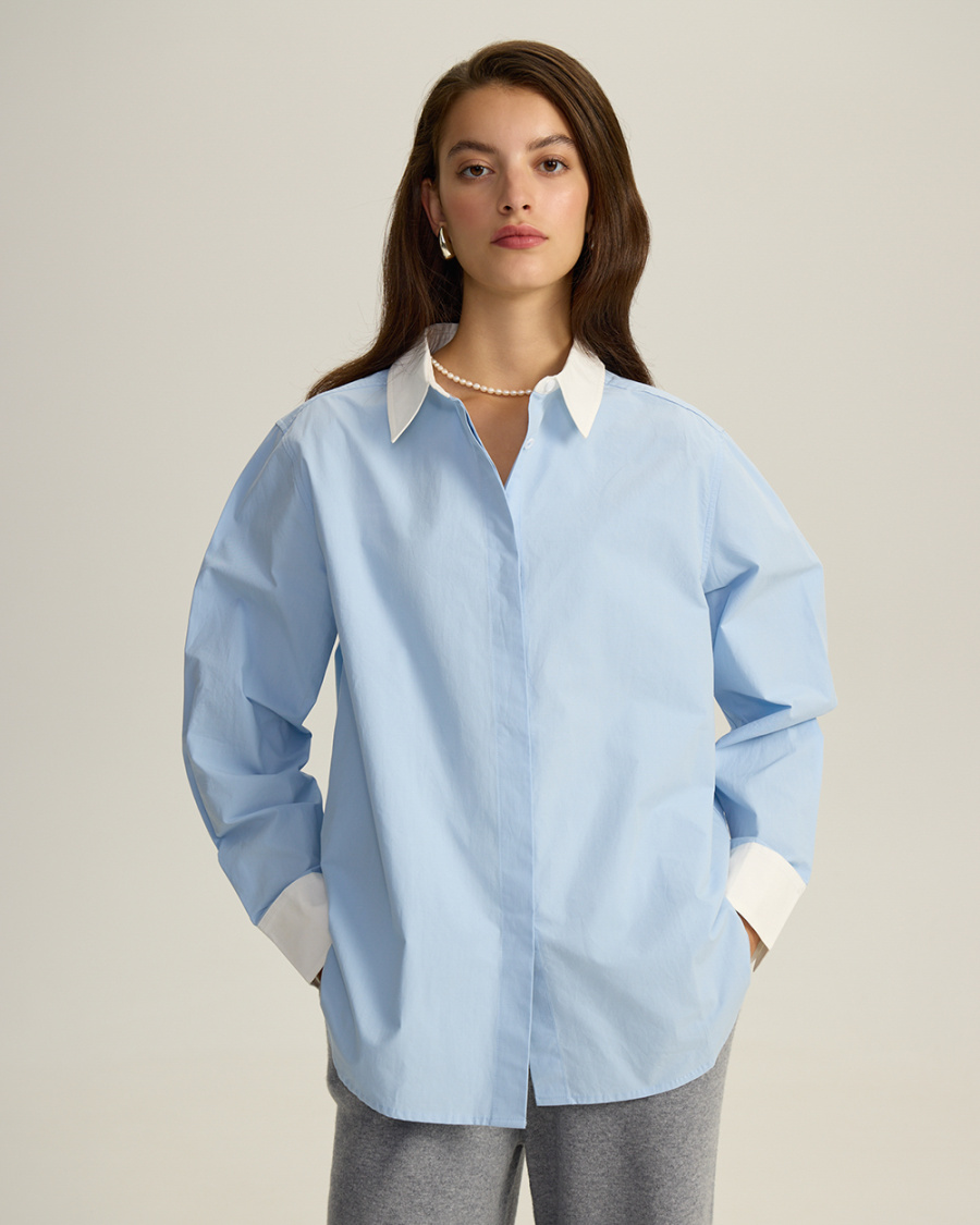 Хлопковая рубашка с контрастным воротником и манжетами, голубой