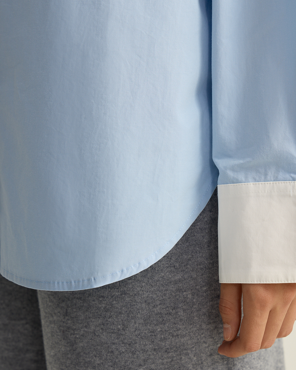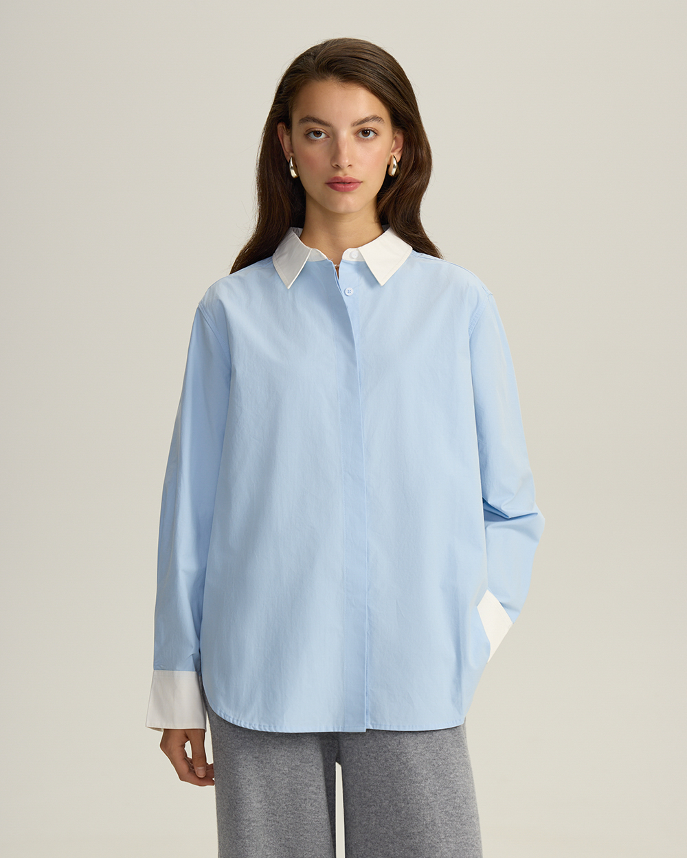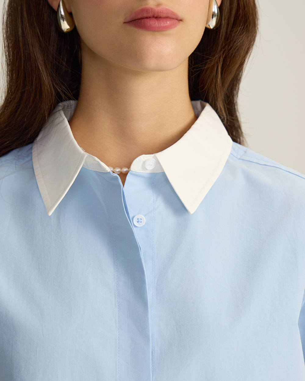 Хлопковая рубашка с контрастным воротником и манжетами, голубой