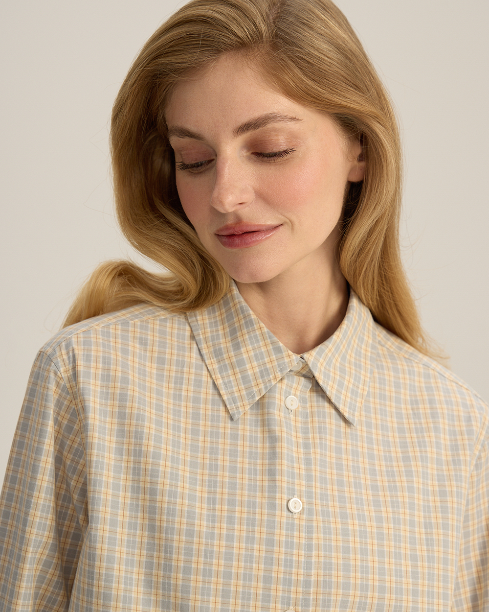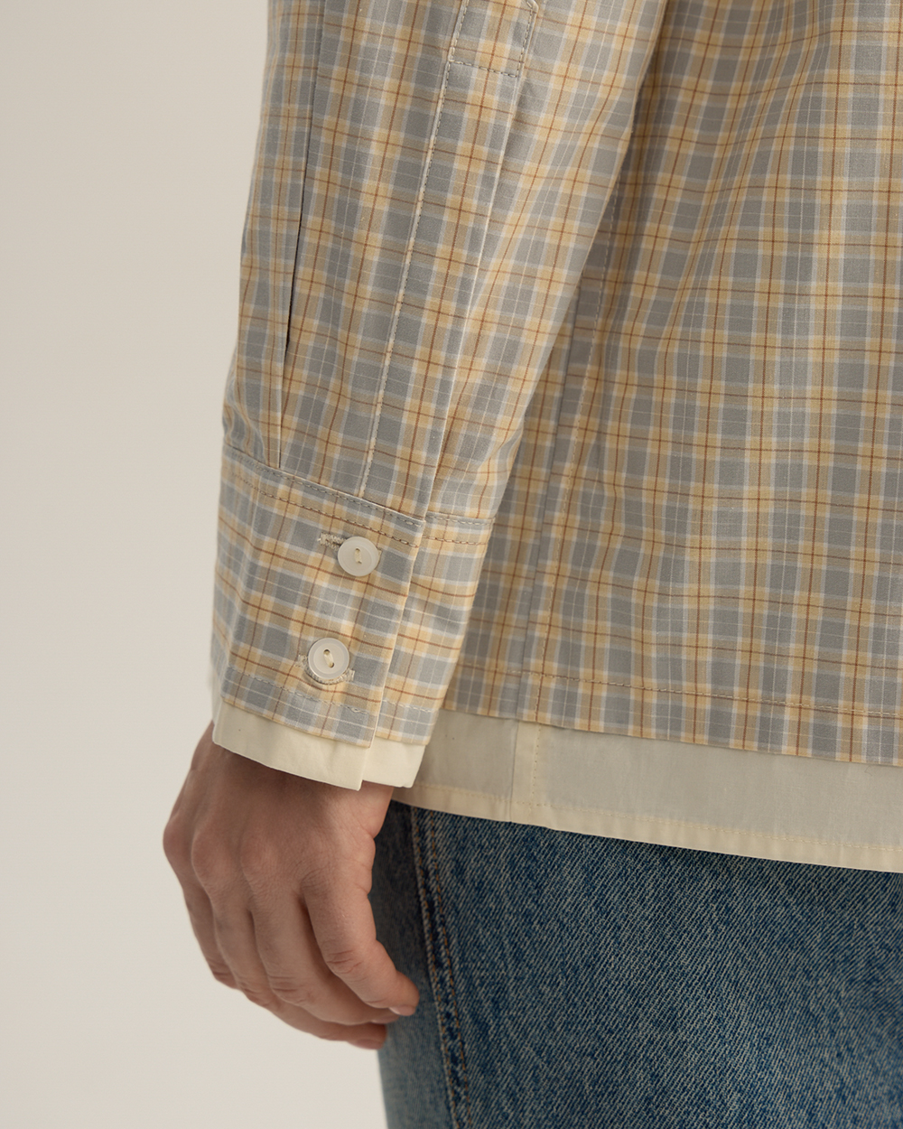 Трендовая идея носить две рубашки одна поверх другой смотрится интересно, но не всегда может быть комфортной. Мы решили создать модель рубашки, которая визуально имитирует актуальную двухслойную стилизацию, но при этом не требует от вас никаких усилий. Маленькая деталь - контрастная окантовка на манжетах и по низу рубашки, при этом заметный эффект расслабленного образа с “изюминкой”.