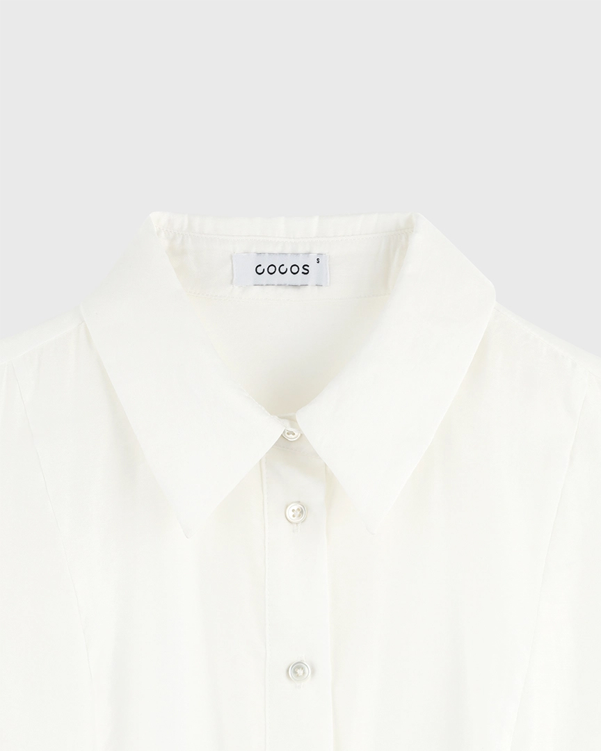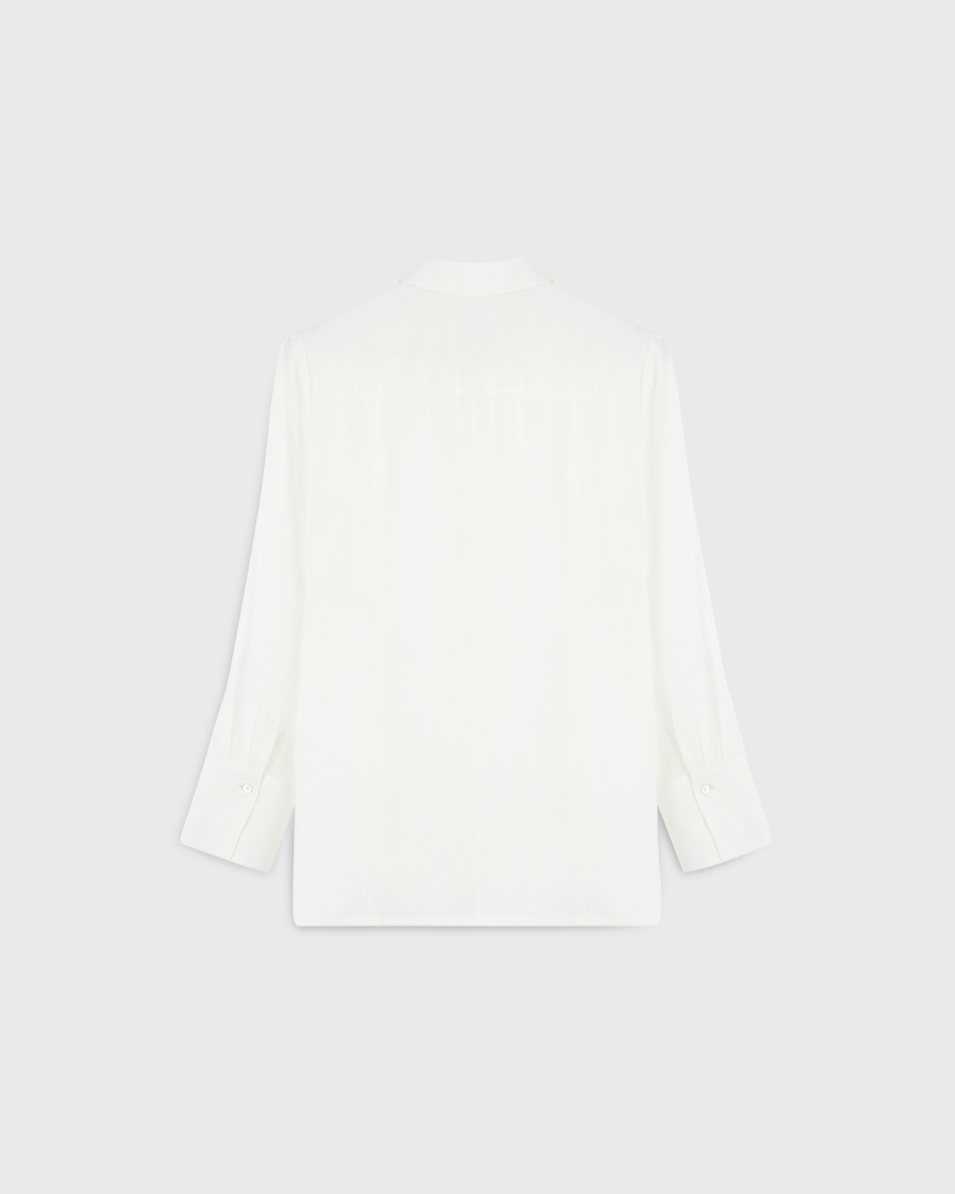 Блуза приталенного кроя из полупрозрачной, нежной, как пенка, ткани, на основе модала. Отложной воротник, длинные рукава с широкими манжетами и пуговицы из натуральной ракушки. Имеет подчеркнутые рельефы, которые визуально вытягивают силуэт. Благодаря приталенному крою и структурированным швам сзади изделие выглядит элегантно и создает слегка приталенный силуэт.