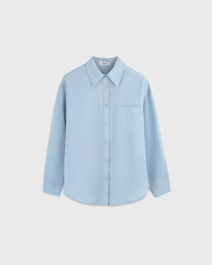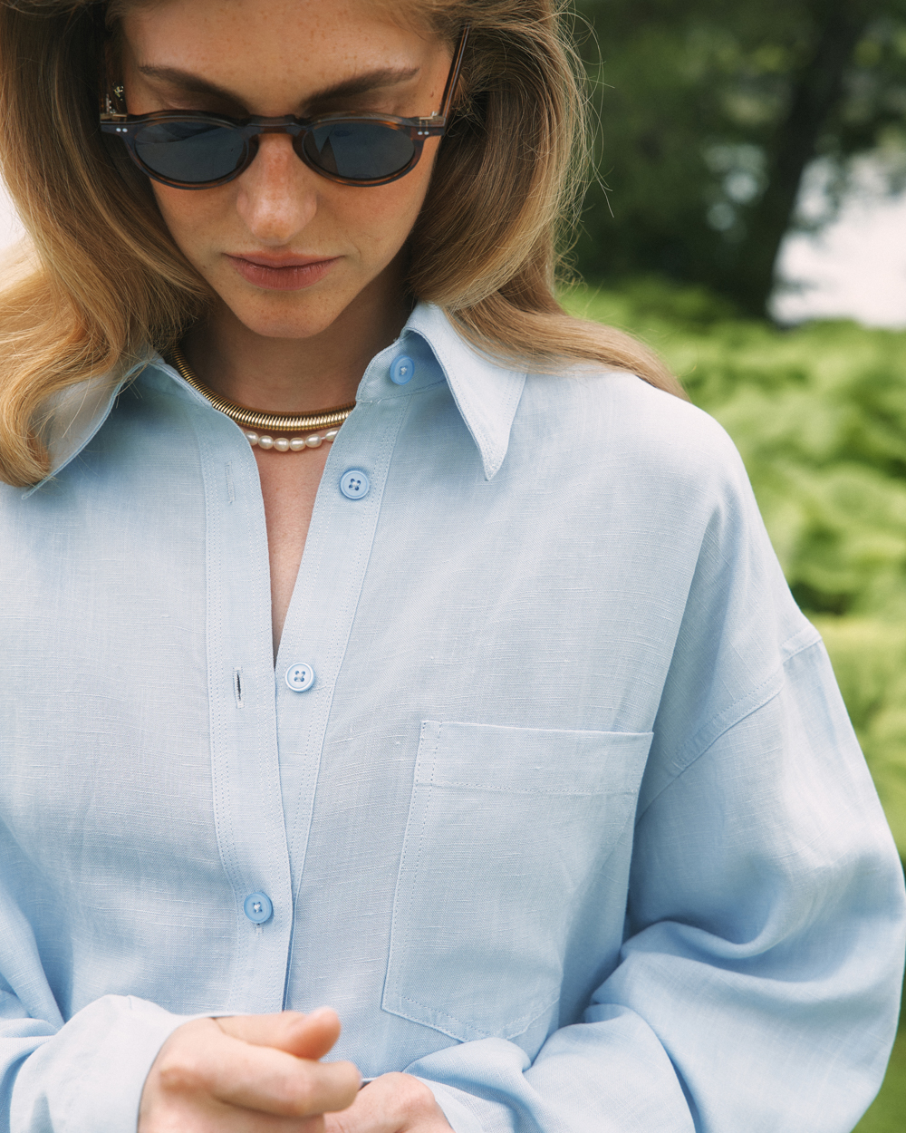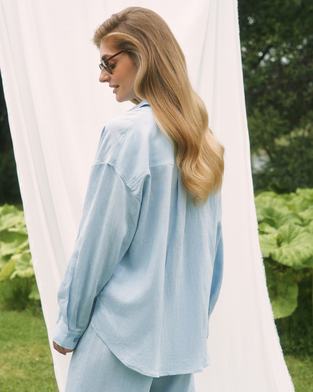 Рубашка оверсайз из тенселя и льна, небесно-голубой