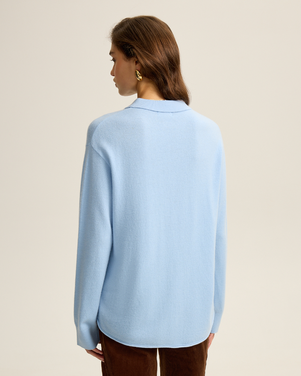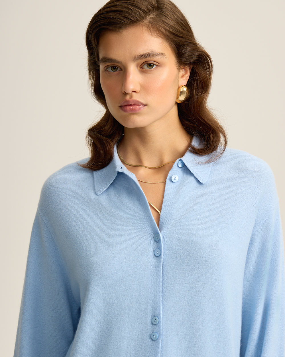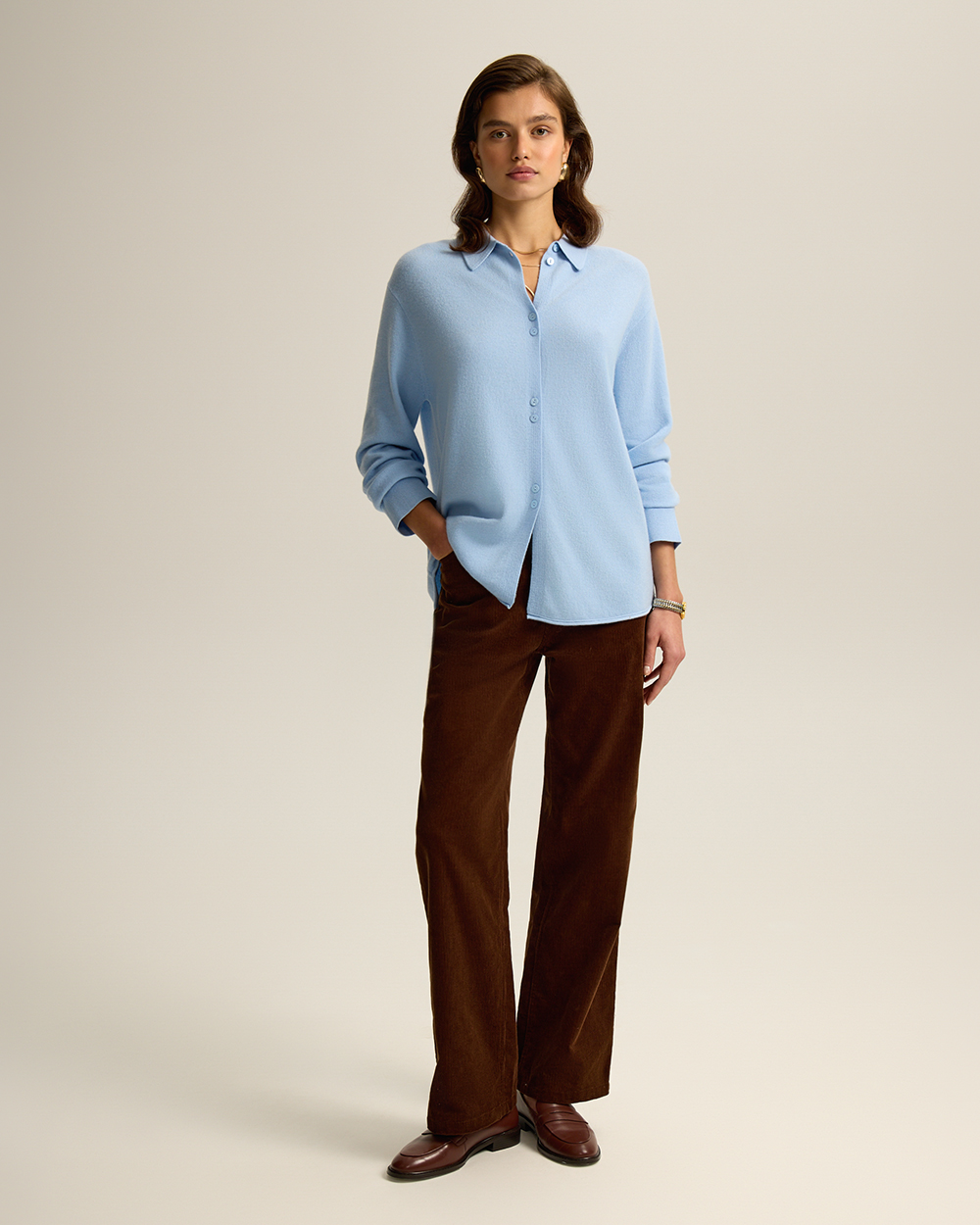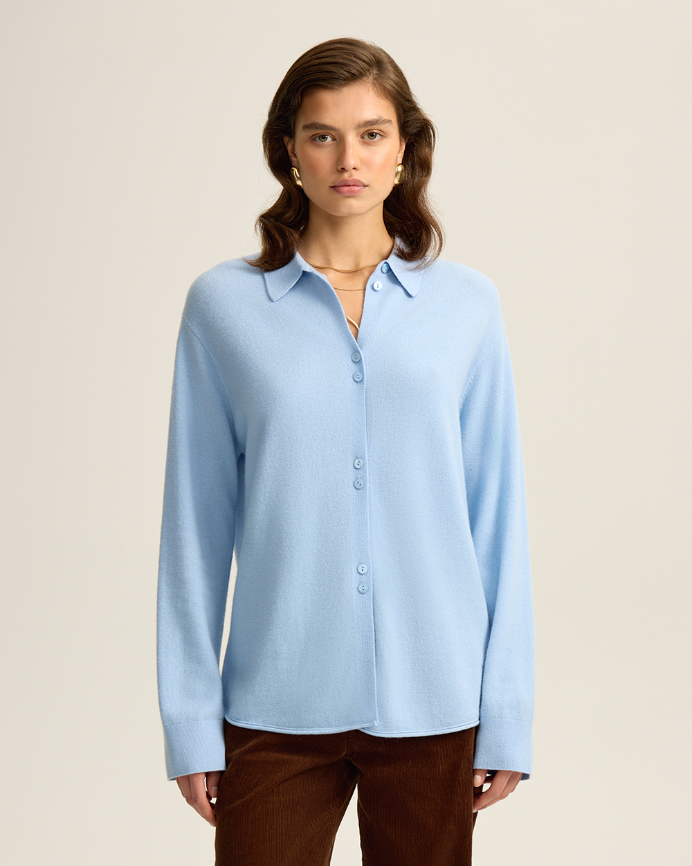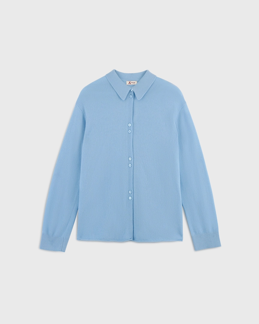 Трикотажная рубашка и кардиган, 2 в 1, из шерсти мериноса, голубой