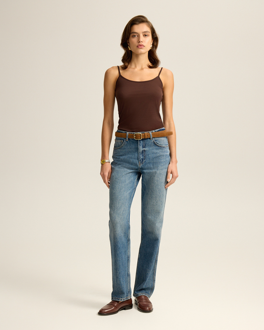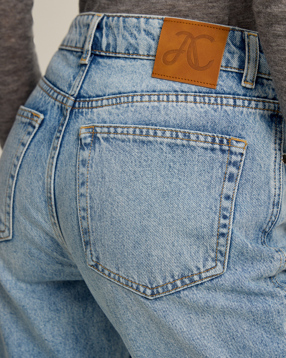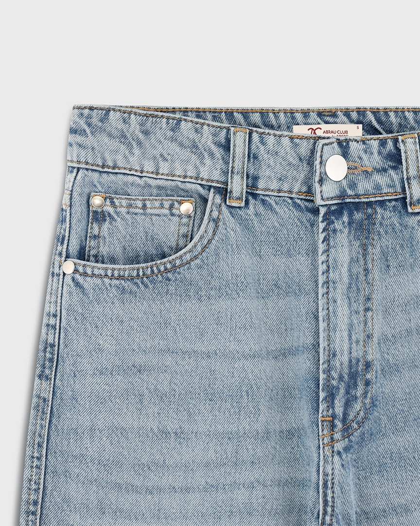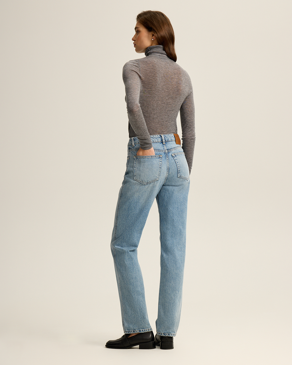 Джинсы прямого кроя классической посадки. Комфортный деним из 100% хлопка светло-голубого оттенка с легким эффектом потертостей. Округлые карманы спереди, карманы сзади.
