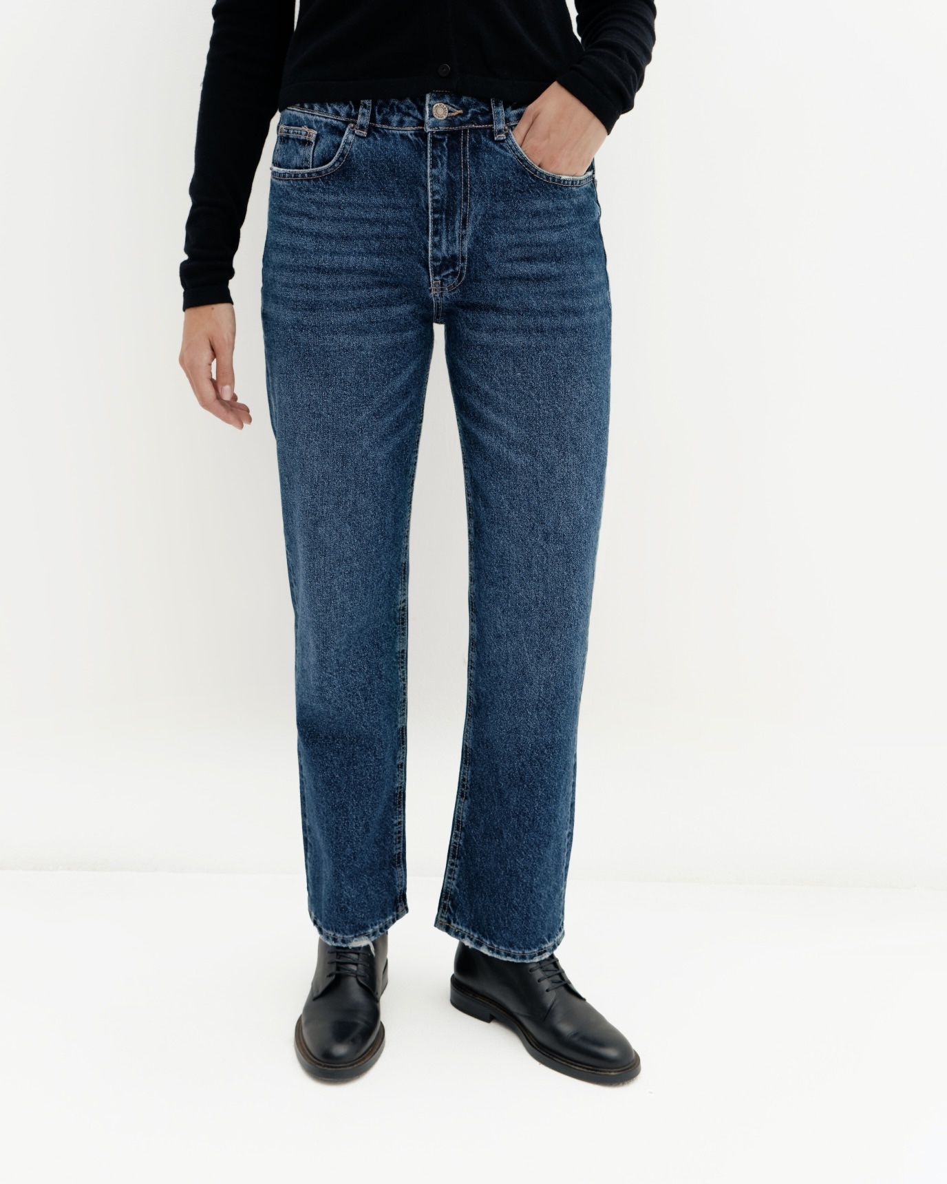Джинсы прямого кроя со средней посадкой. Модель плотно прилегает по линии бедер, отлично подчеркивает силуэт. Комфортный хлопковый деним высокого качества. Легкий эффект потертостей. Красивый благородный оттенок, который будет уместен как в расслабленных образах, так и в офисе с нестрогим дресс-кодом.