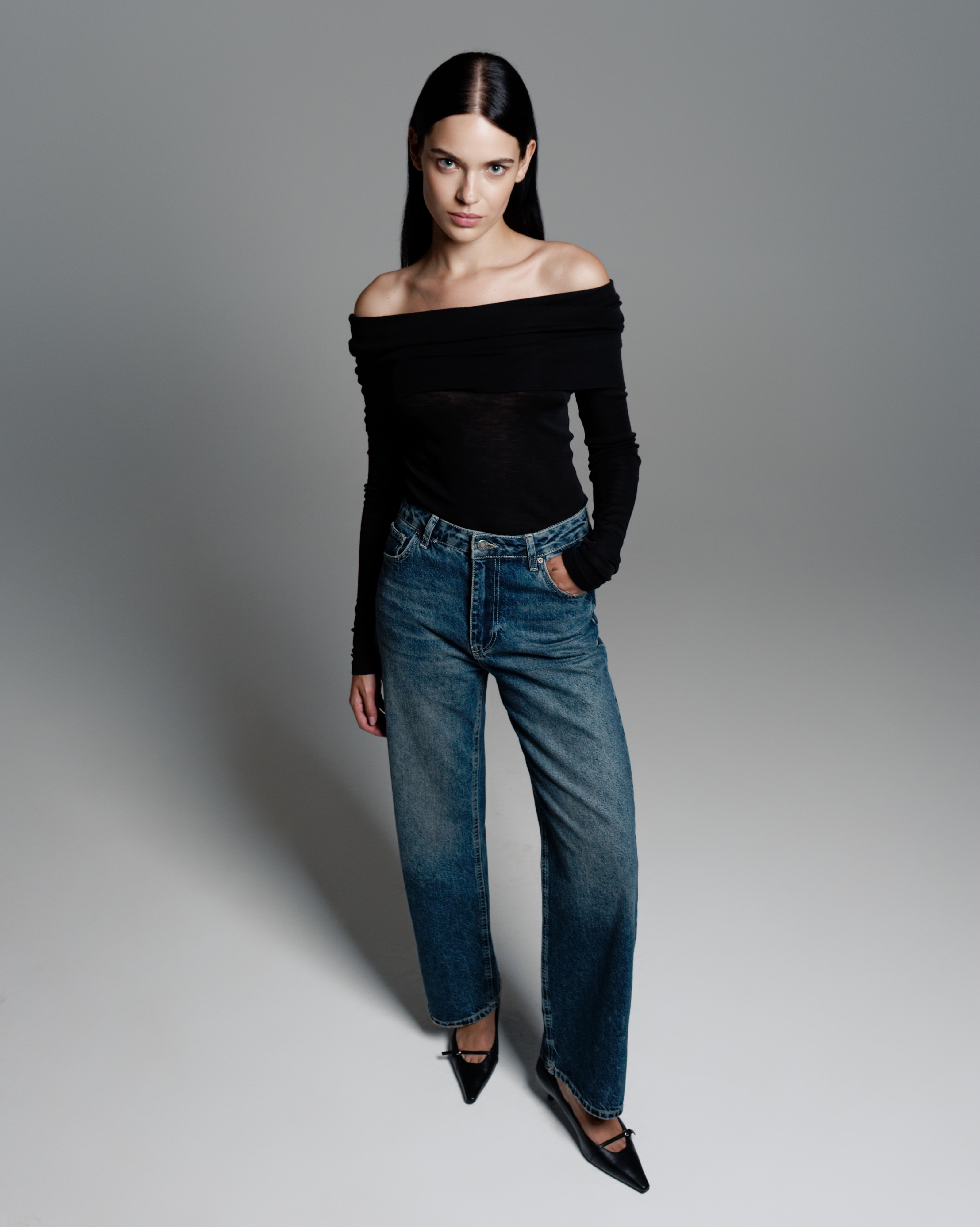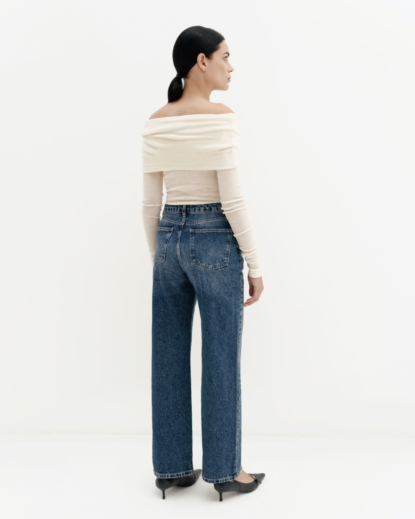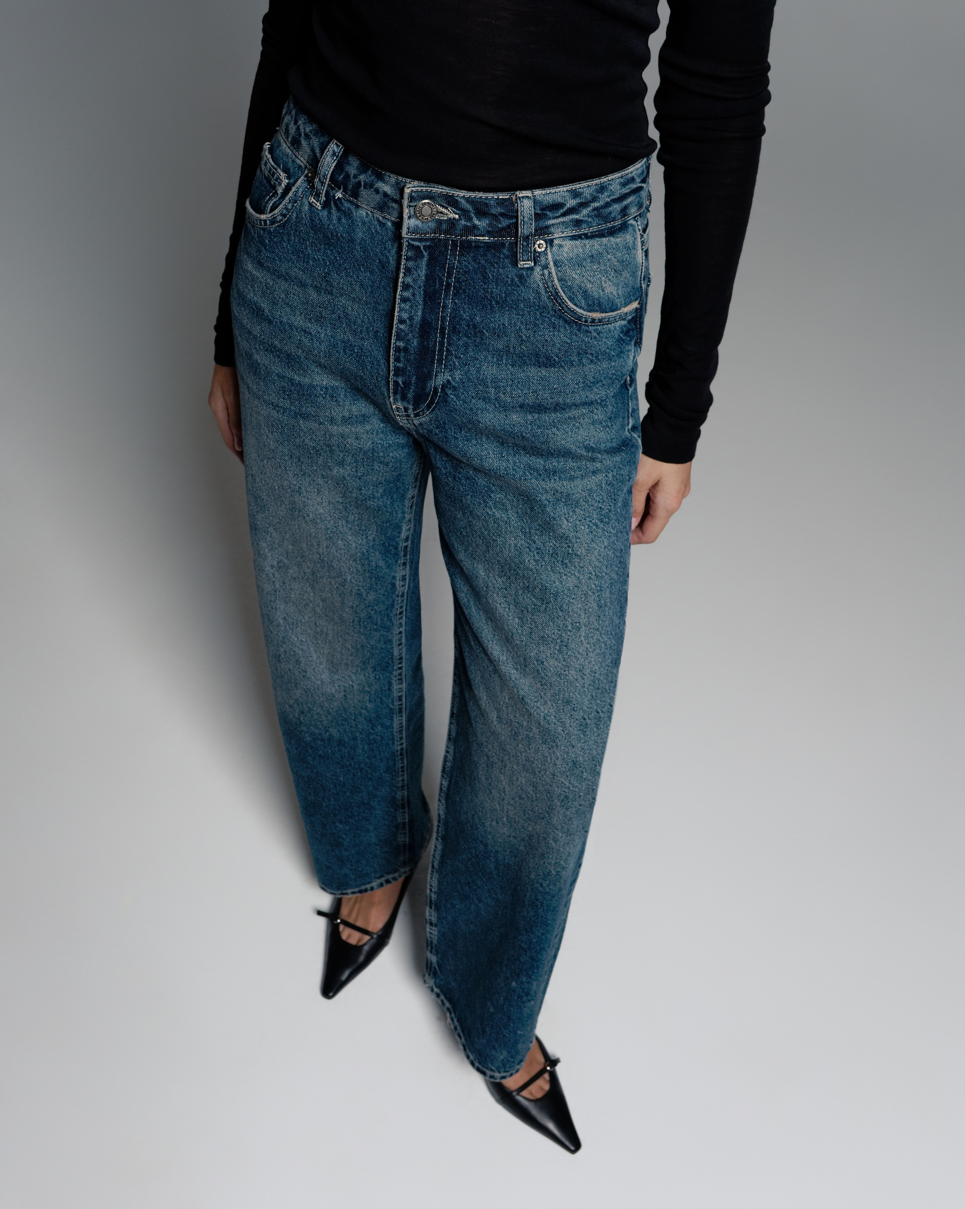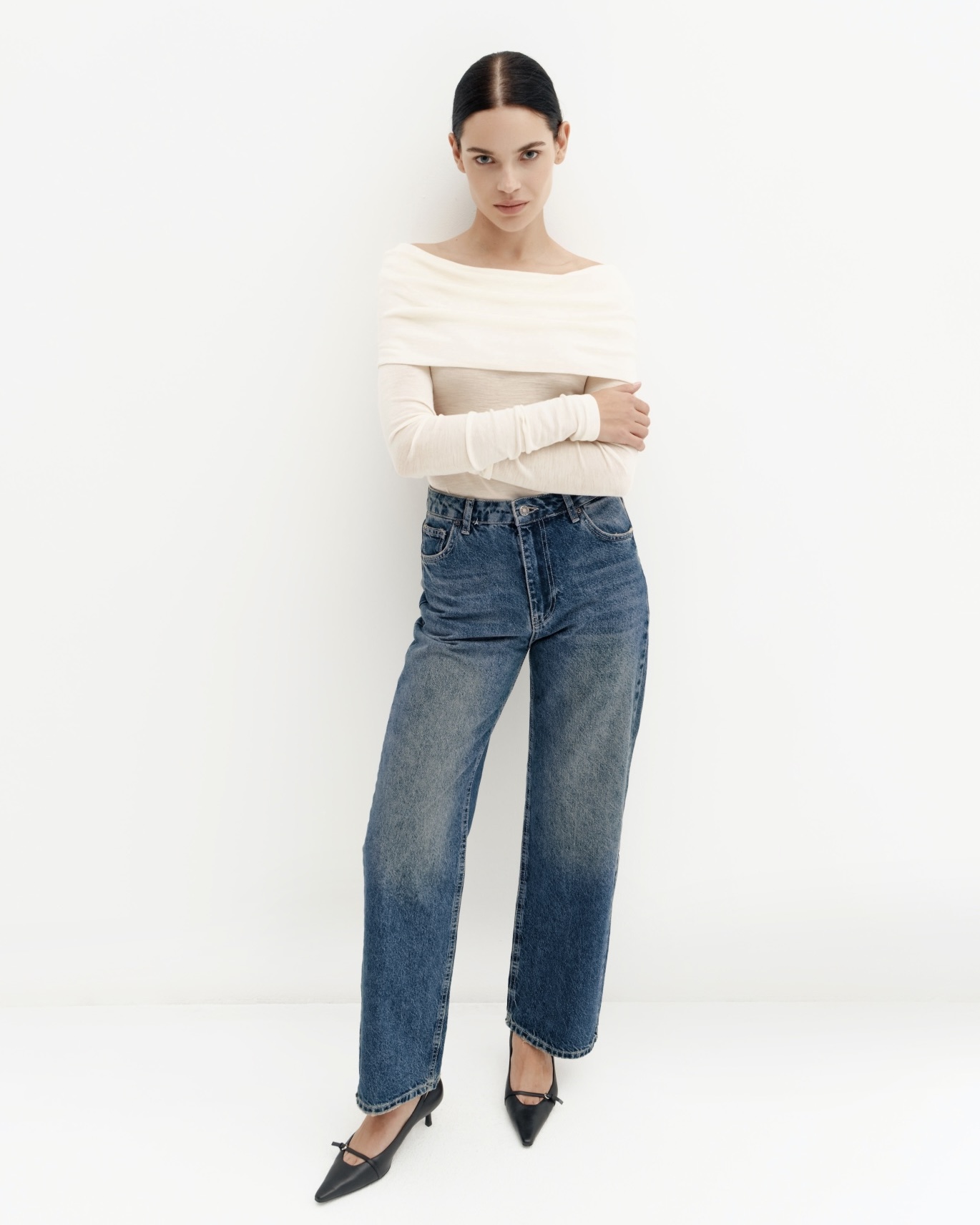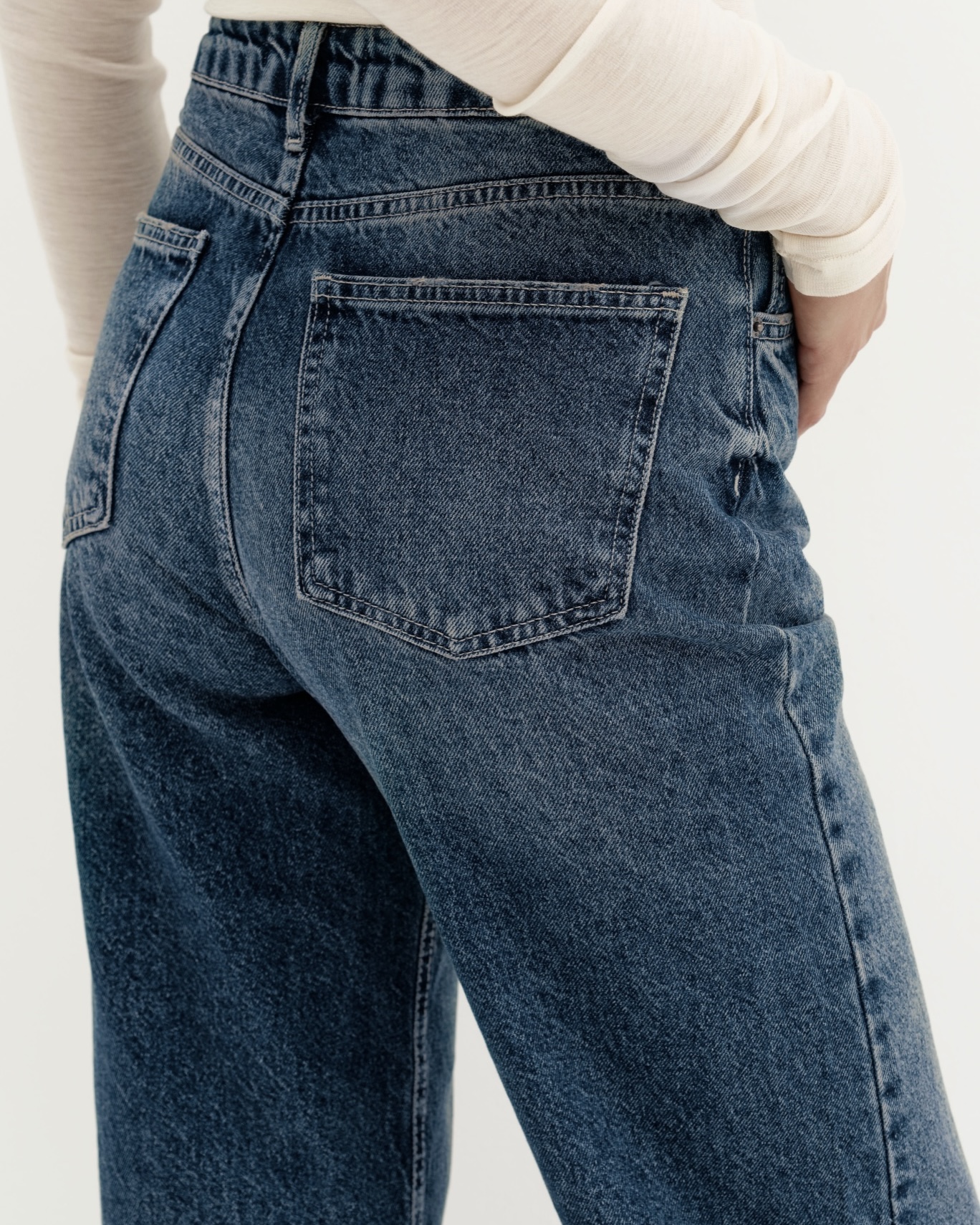 Джинсы из хлопкового денима свободного кроя с высокой посадкой, актуальный объемный силуэт и эффект потертостей.
