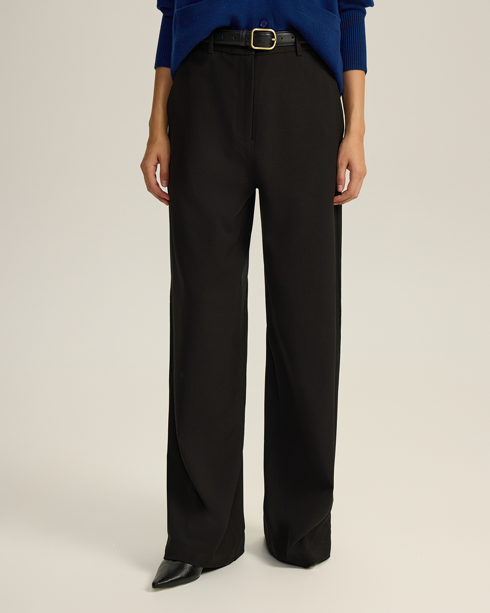 Классические брюки прямого кроя, посадка на талии. Практичная костюмная смесовая ткань на основе района (вискозы). Карманы. Застежка на молнию, крючок и скрытую пуговицу. Шлевки для ремня.