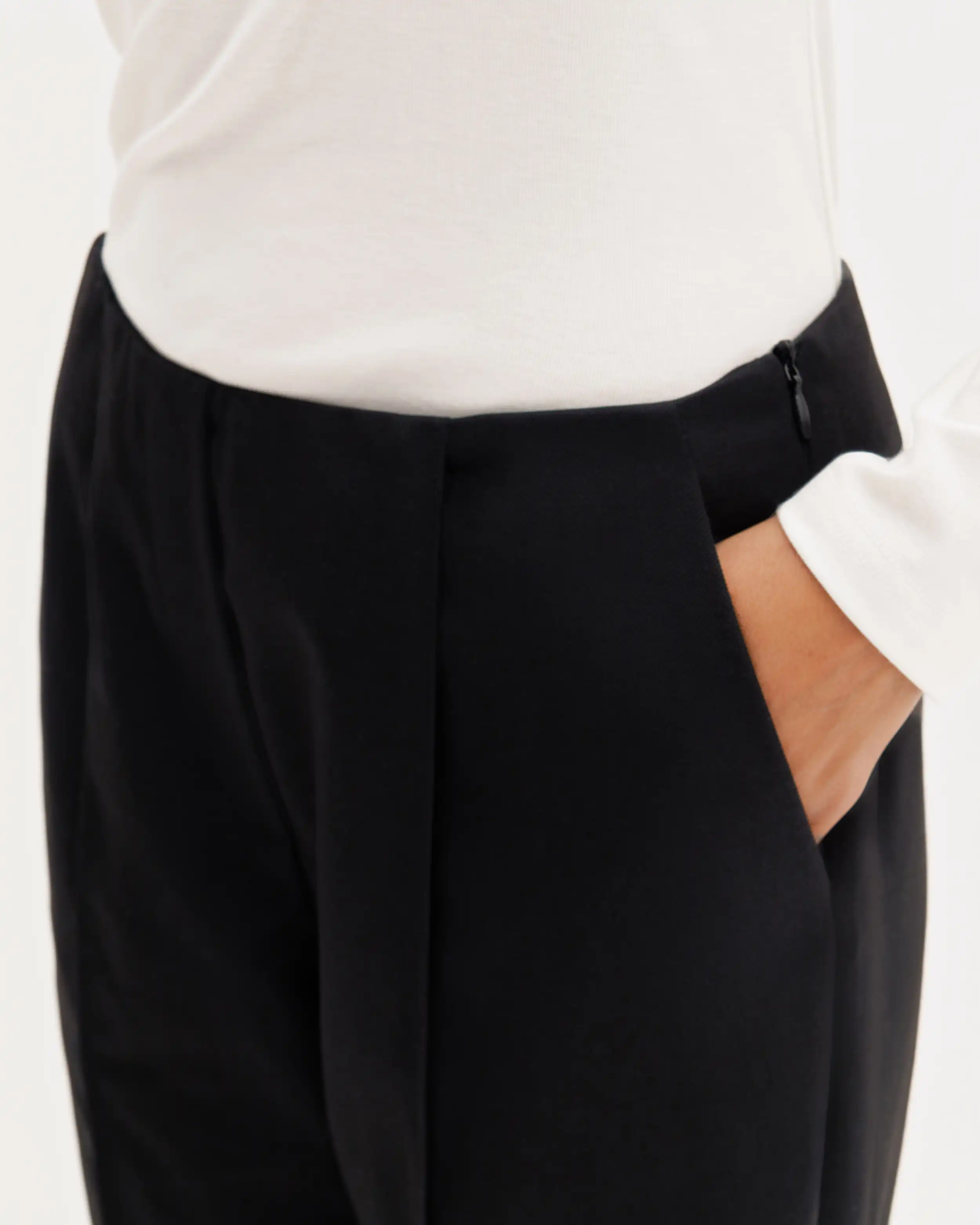 Классические брюки средней посадки, с шерстью. Минималистичный крой, защипы, карманы. Застежка на молнию сбоку.