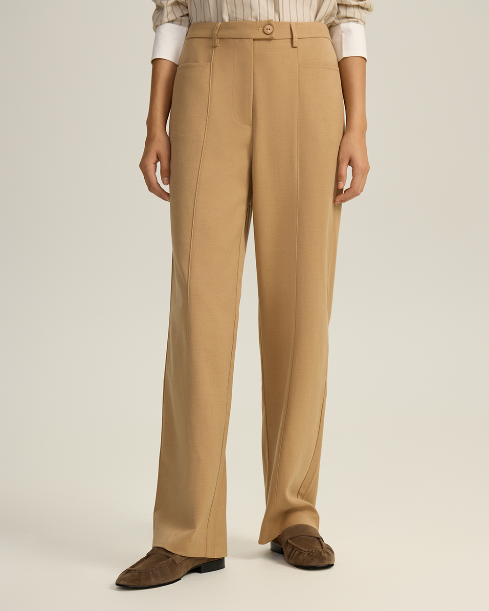 Прямые брюки с отстрочками, бежевый