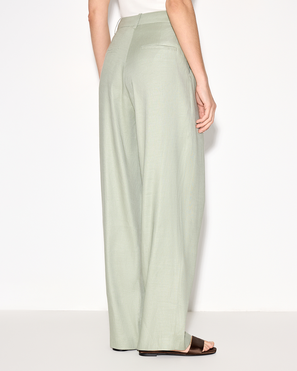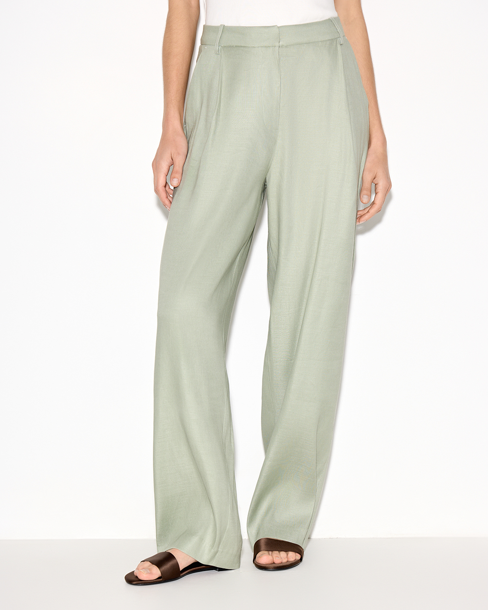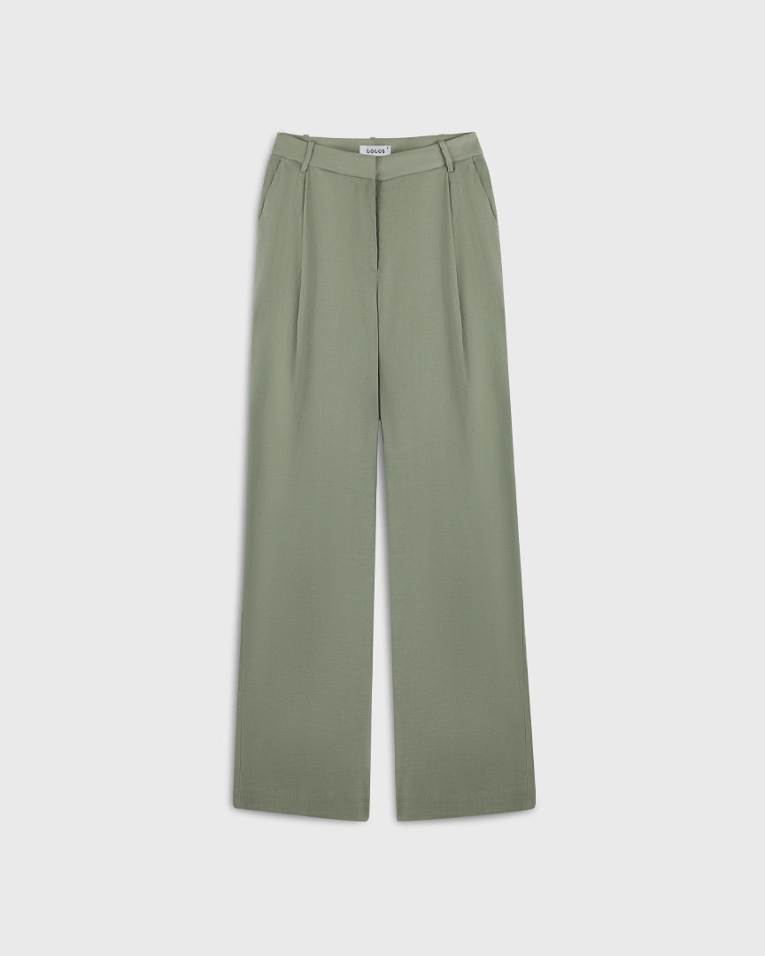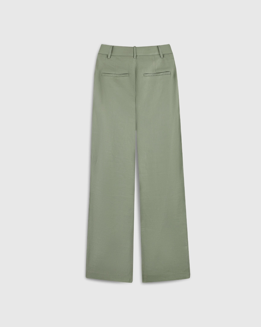 Прямые брюки с защипами, изо льна и района, зеленый оливковый