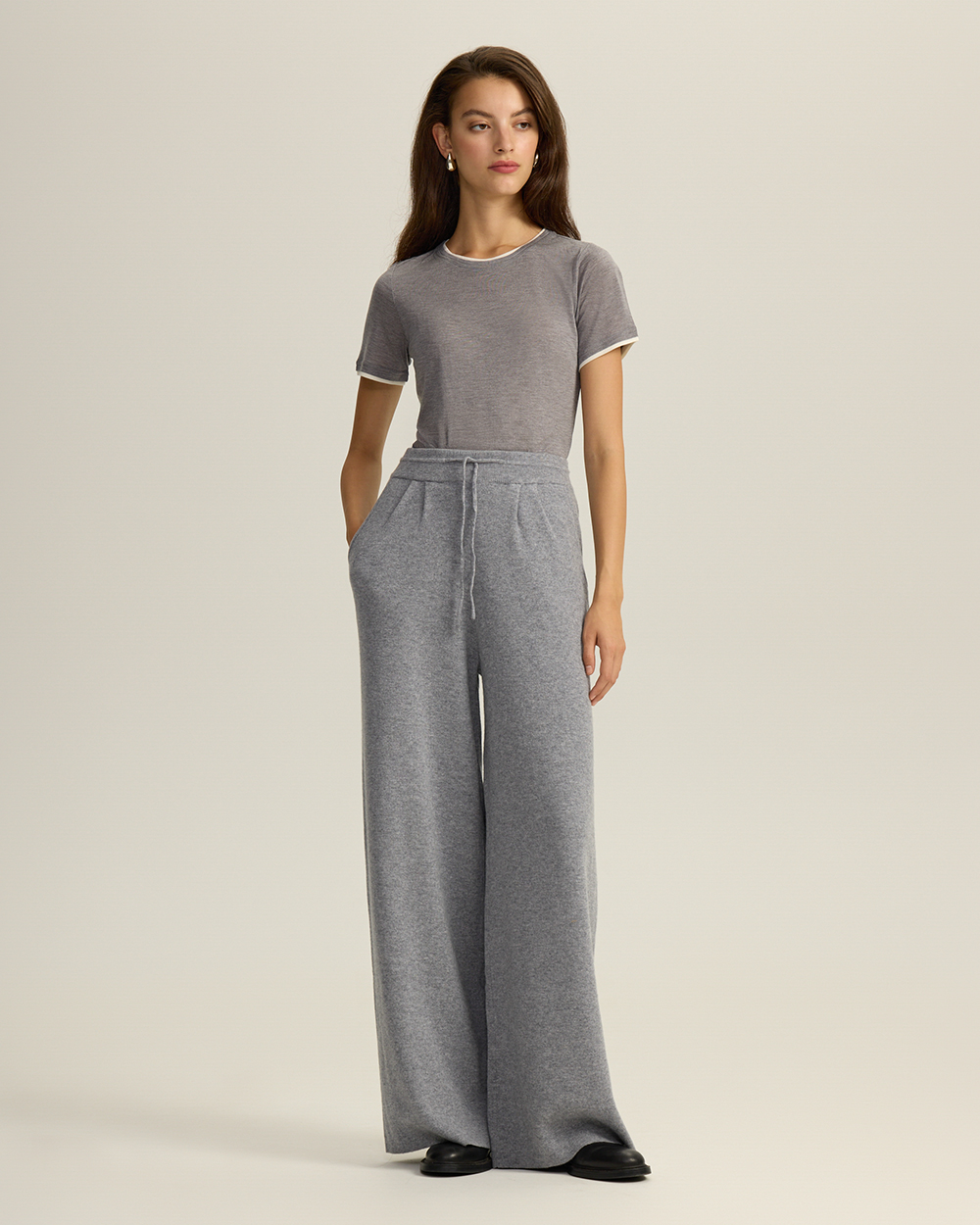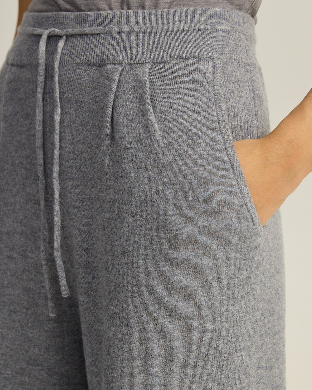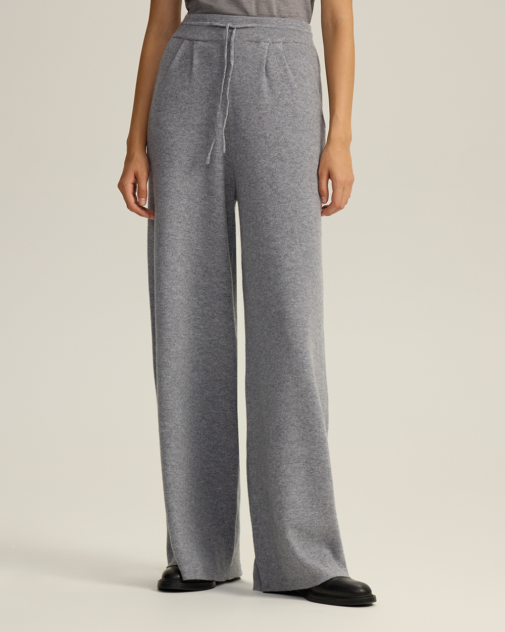 Широкие брюки из мягкого трикотажа из 100% шерсти мериноса. Регулируемый пояс на завязке.