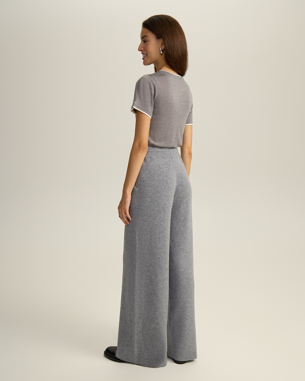 Широкие вязаные брюки из 100% шерсти мериноса, серый