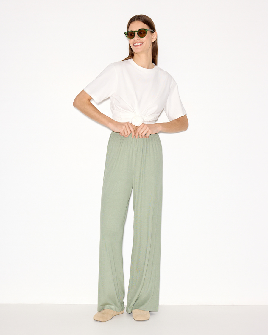 Брюки из тонкого трикотажа на резинке — повтор нашего бестселлера уже в новом оттенке. Материал мягкий, легкий и дышащий, в брюках будет комфортно весь день.