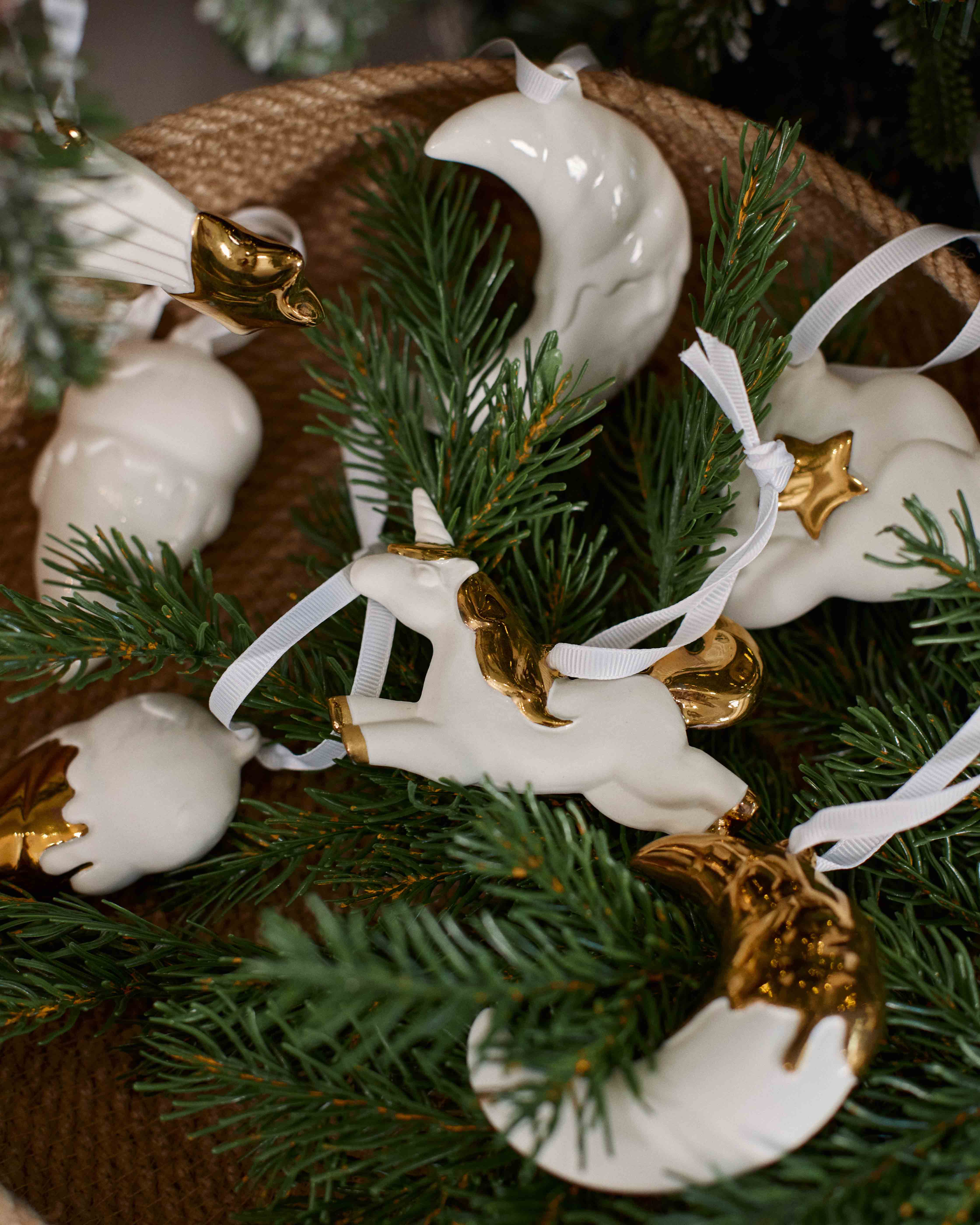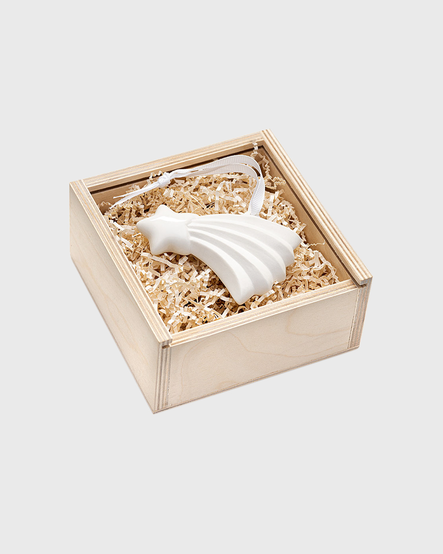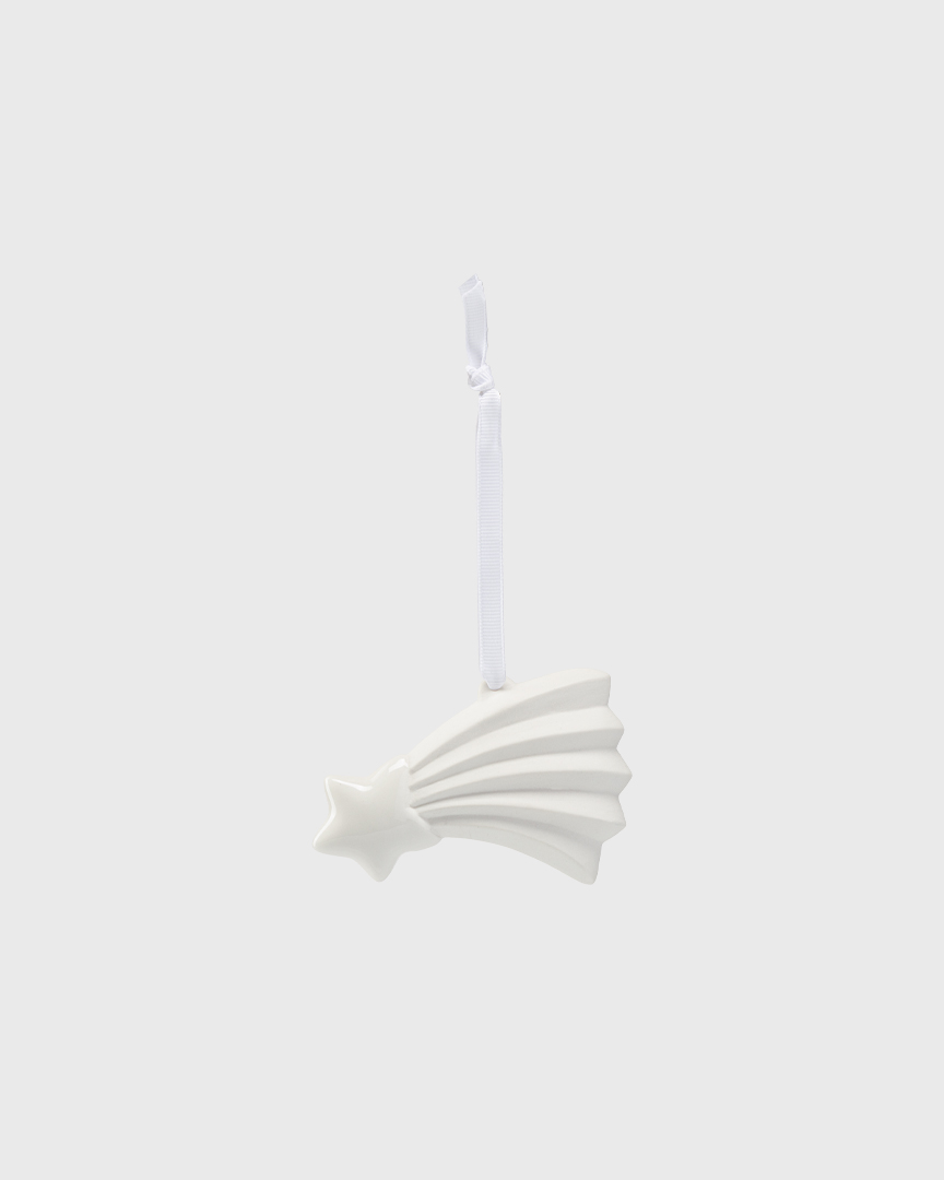 Авторская фарфоровая игрушка "Комета" ручной работы — новое прочтение праздничных традиций, которое сочетает в себе элементы классической новогодней атрибутики и современного дизайна.
