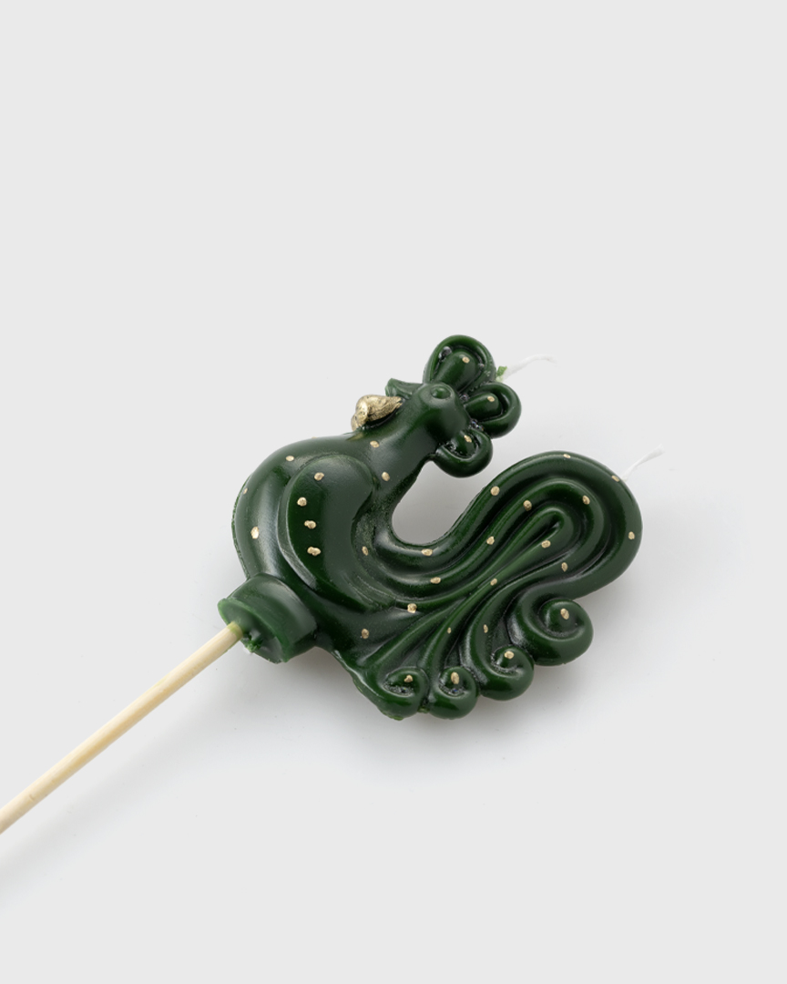 Фигурная новогодняя свеча "Петушок", темно-зеленый