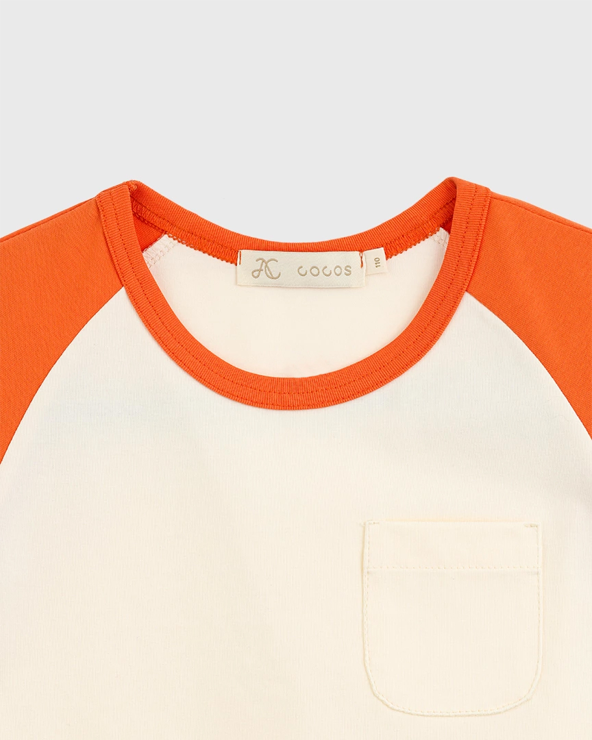 Футболка унисекс детская из мягкого хлопка с контрастными рукавами и передним карманом.