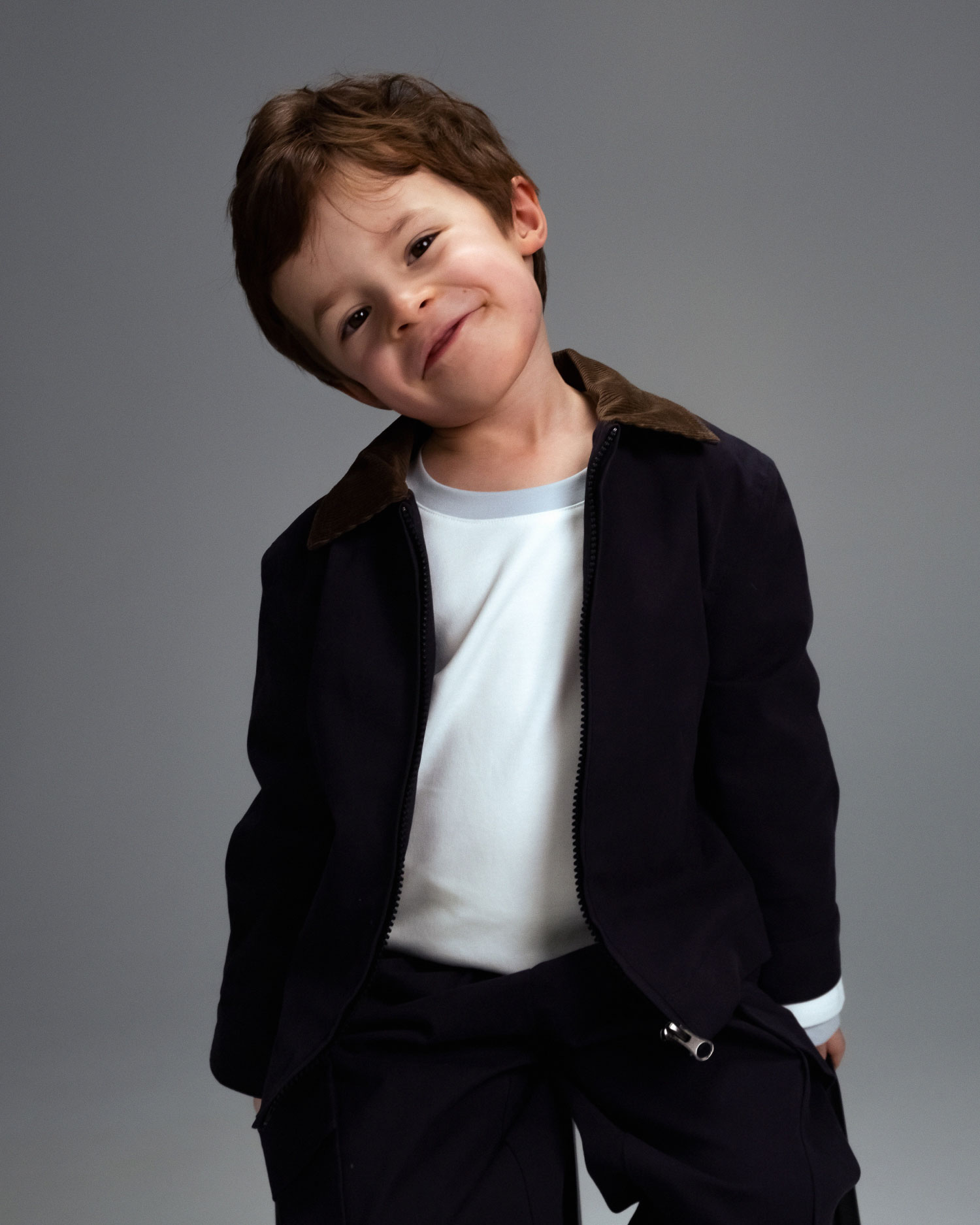 Детская хлопковая куртка Unisex с вельветовым воротником, темно-синий