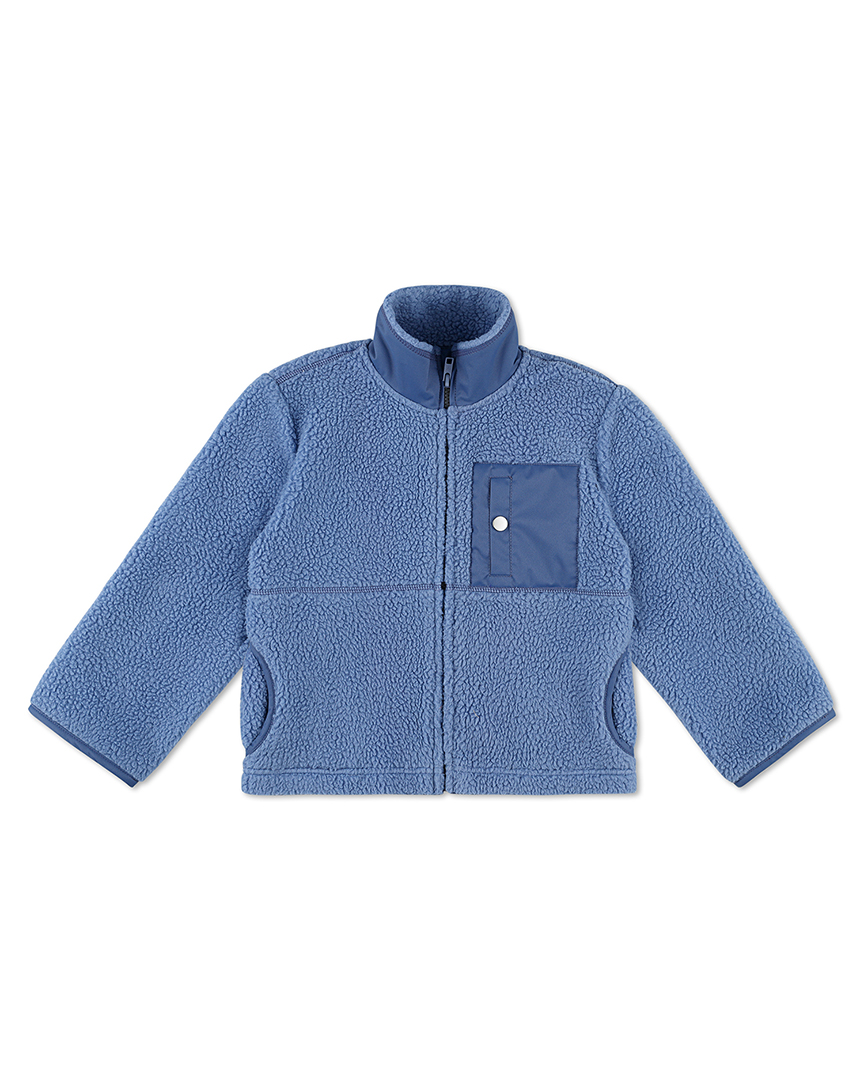 Детская куртка на молнии. Из флиса шерпа с меховым эффектом. Прямой крой. Застежка на молнии, воротник-стойка, 2 кармана, боковые карманы, накладной карман на кнопке.