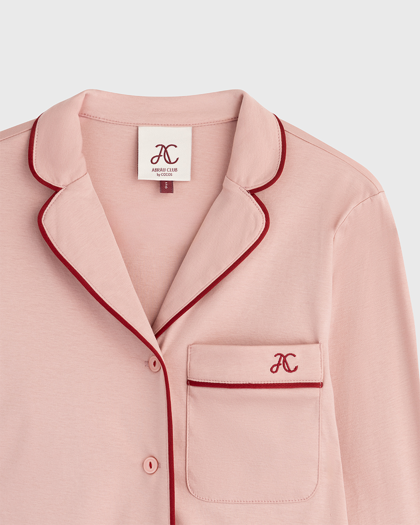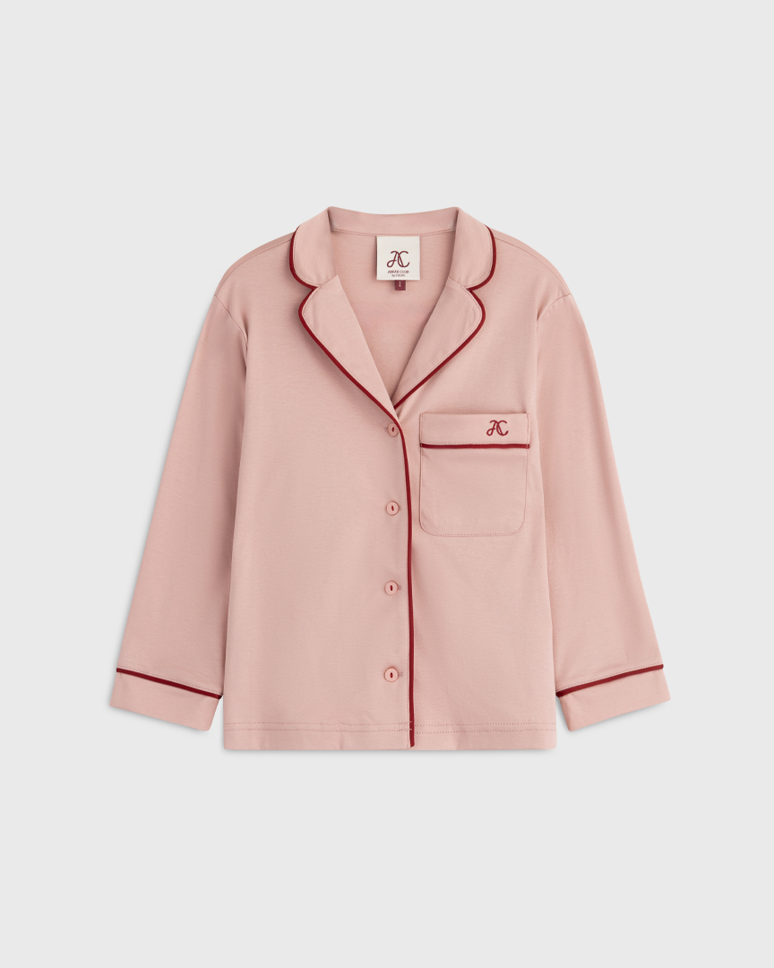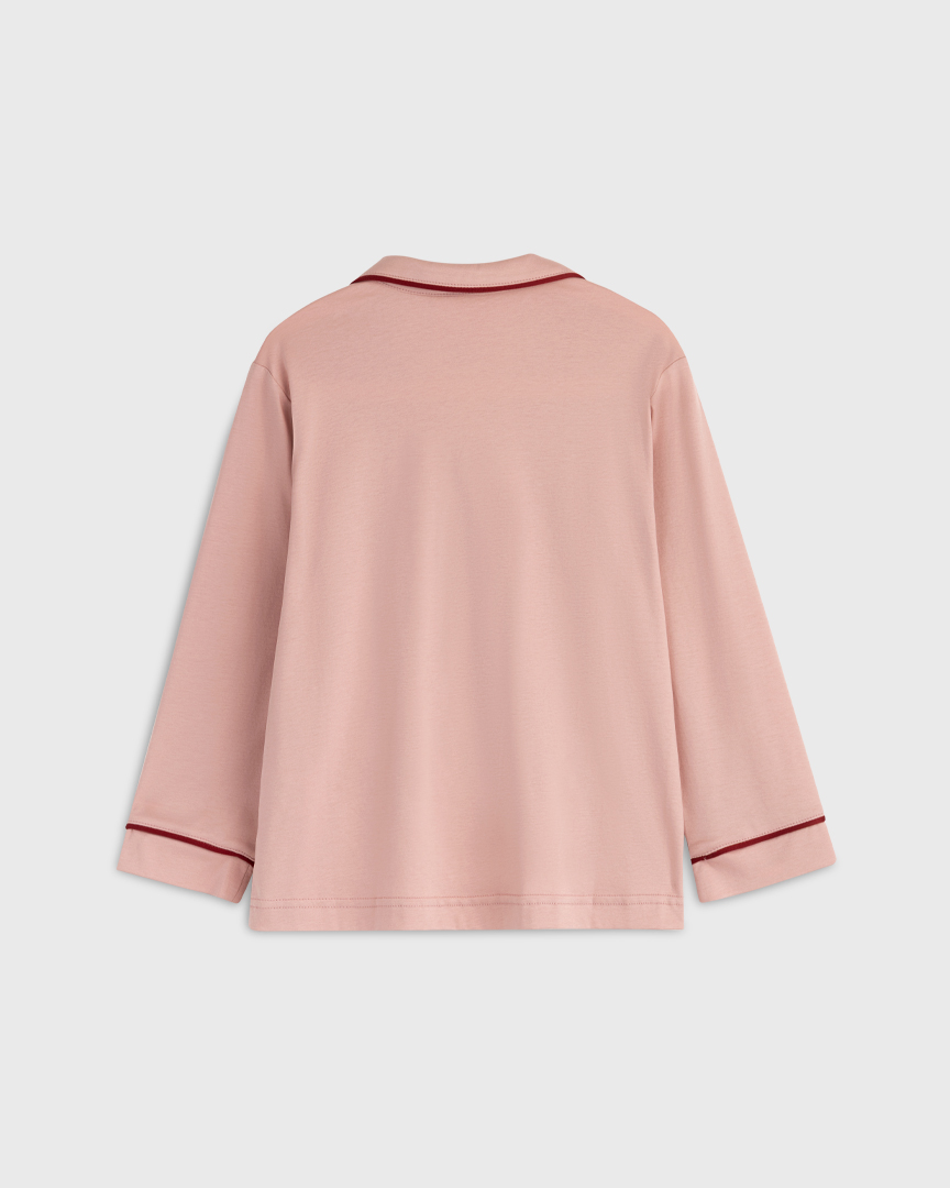 Детская пижама свободного кроя, с отложным воротником, нежно-розового оттенка с контрастным кантом, вышивка монограммы Abrau Club на кармашке спереди.. Приятный мягкий натуральный хлопок высшего качества. Создана специально для уютных зимних вечеров и праздничного настроения, дома или в гостях на домашней вечеринке у друзей. Подойдет и как подарок близким. Соберите комплект - и подарите себе и своим любимым немного волшебства и тепла в преддверии праздника вместе с коллекцией Abrau Club.
