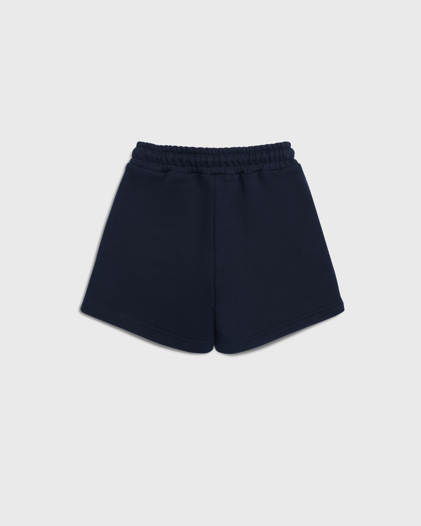 Шорты унисекс детские прямого кроя из хлопка. Регулируемый пояс на шнурке. Передние карманы, вышивка спереди.
