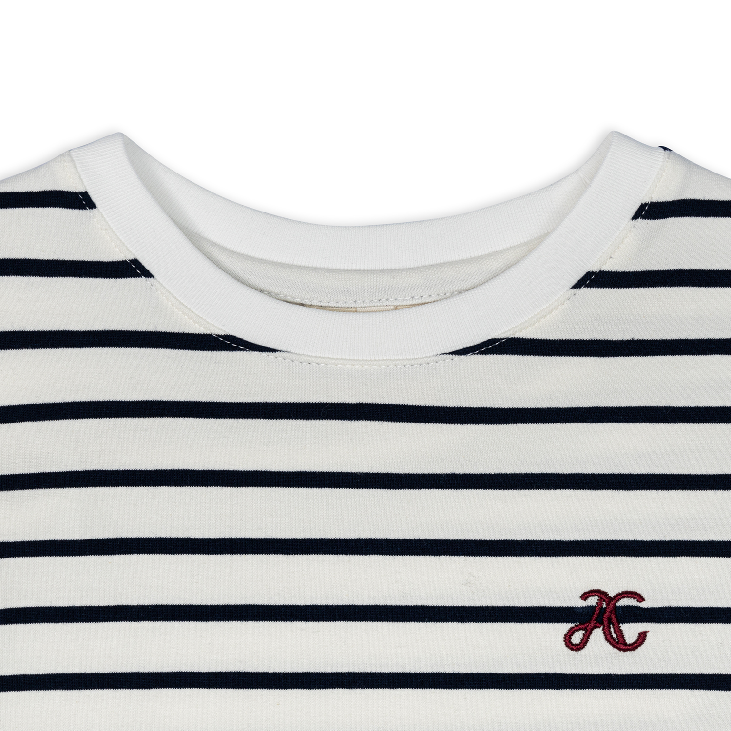 Детский лонгслив унисекс из мягкой ткани на основе хлопка и эластана — лёгкой, нежной и едва ощутимой на теле. Круглый вырез. Спереди вышивка AC (монограмма Abrau Club).
