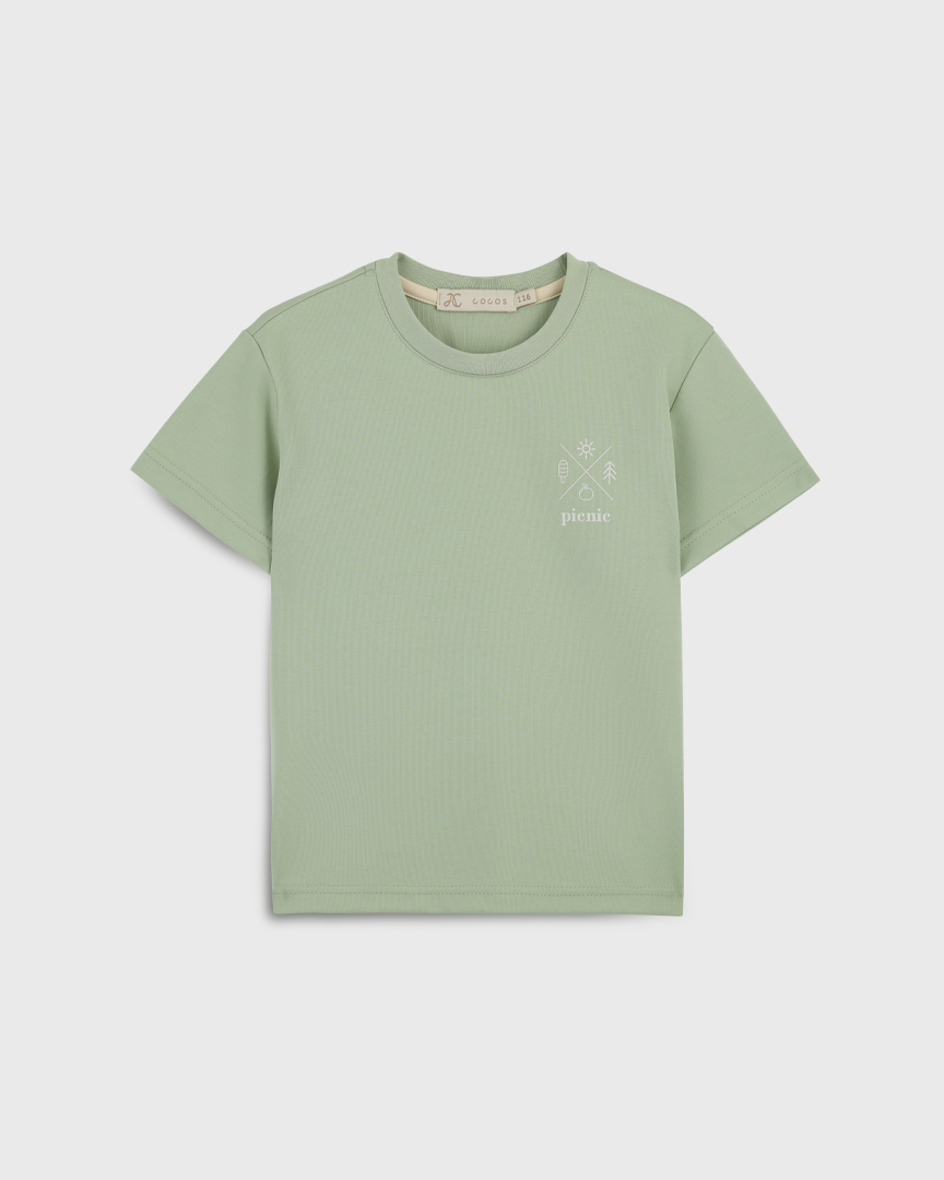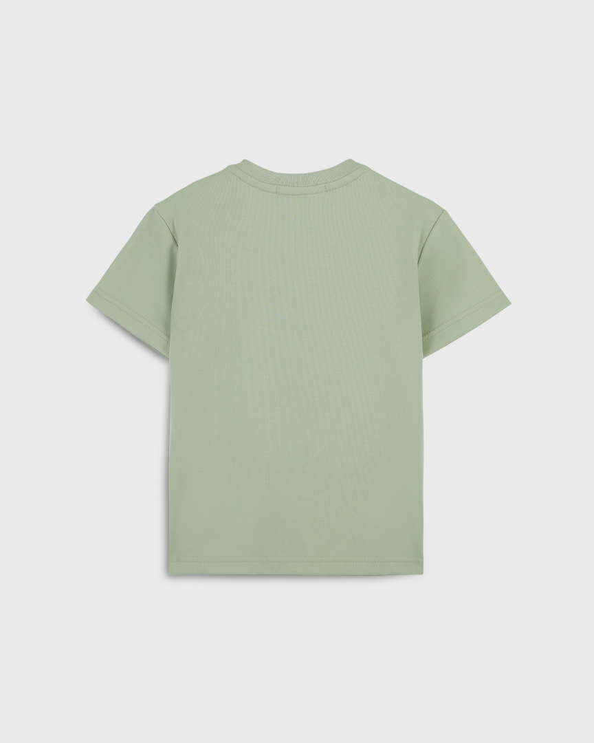Детская футболка унисекс прямого кроя, контрастный принт спереди. Выполнена из хлопка с эластаном.