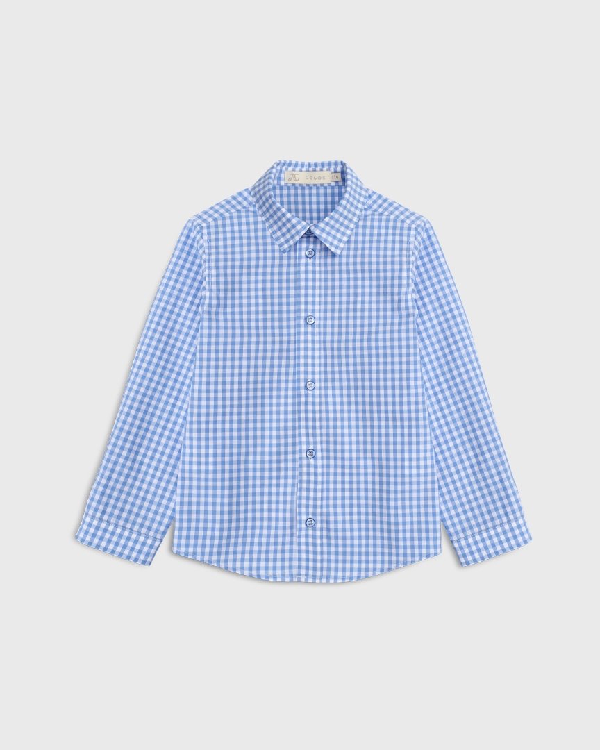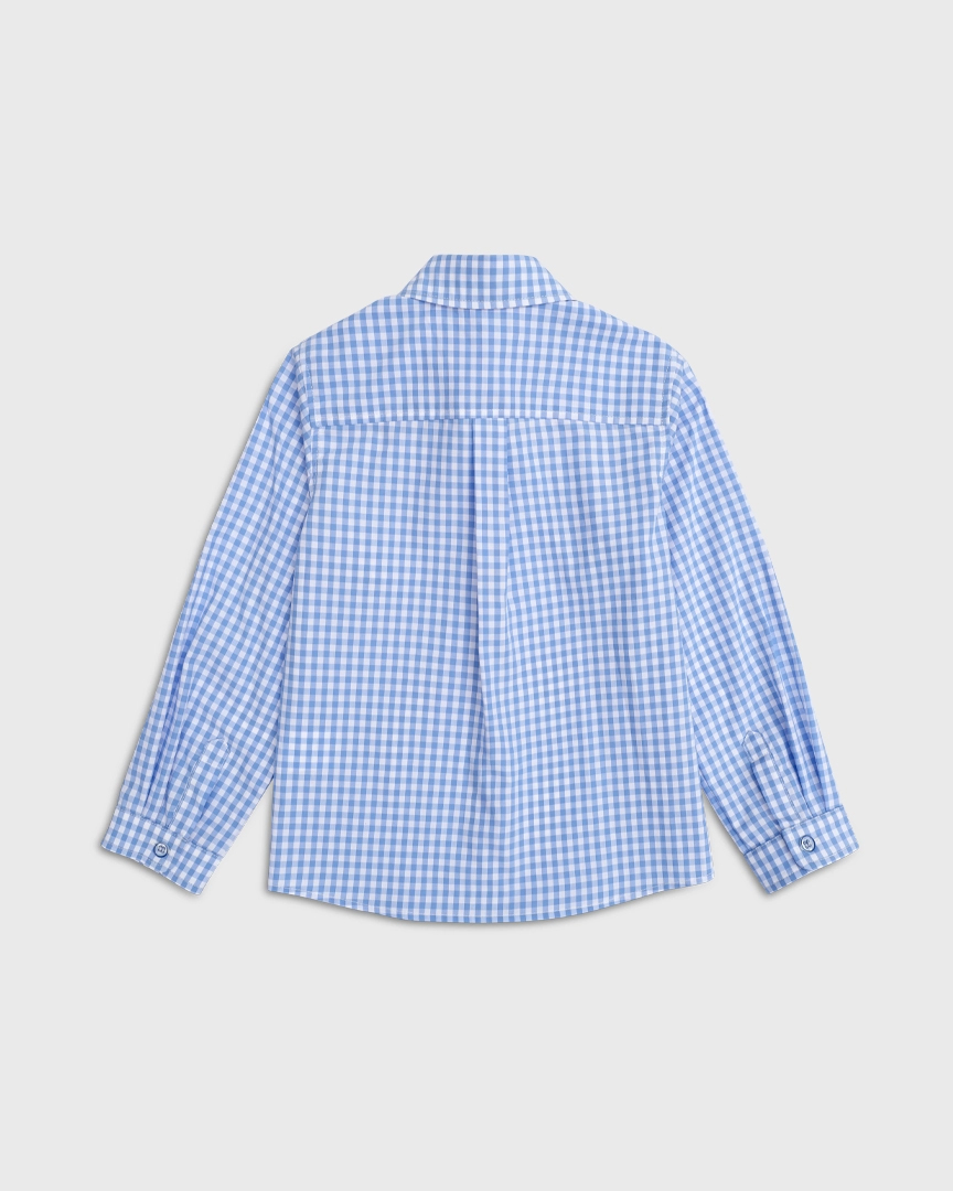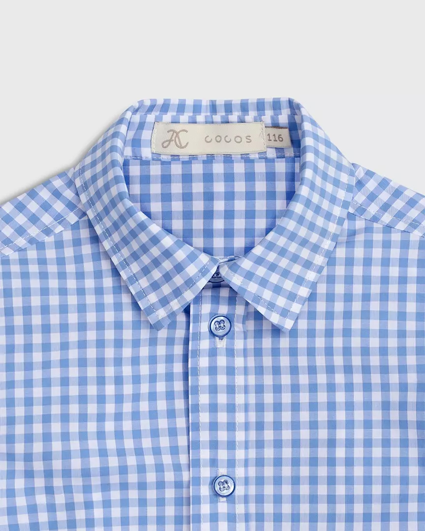 Детская рубашка унисекс в клетку. Отложной воротник. Манжеты на пуговицах.