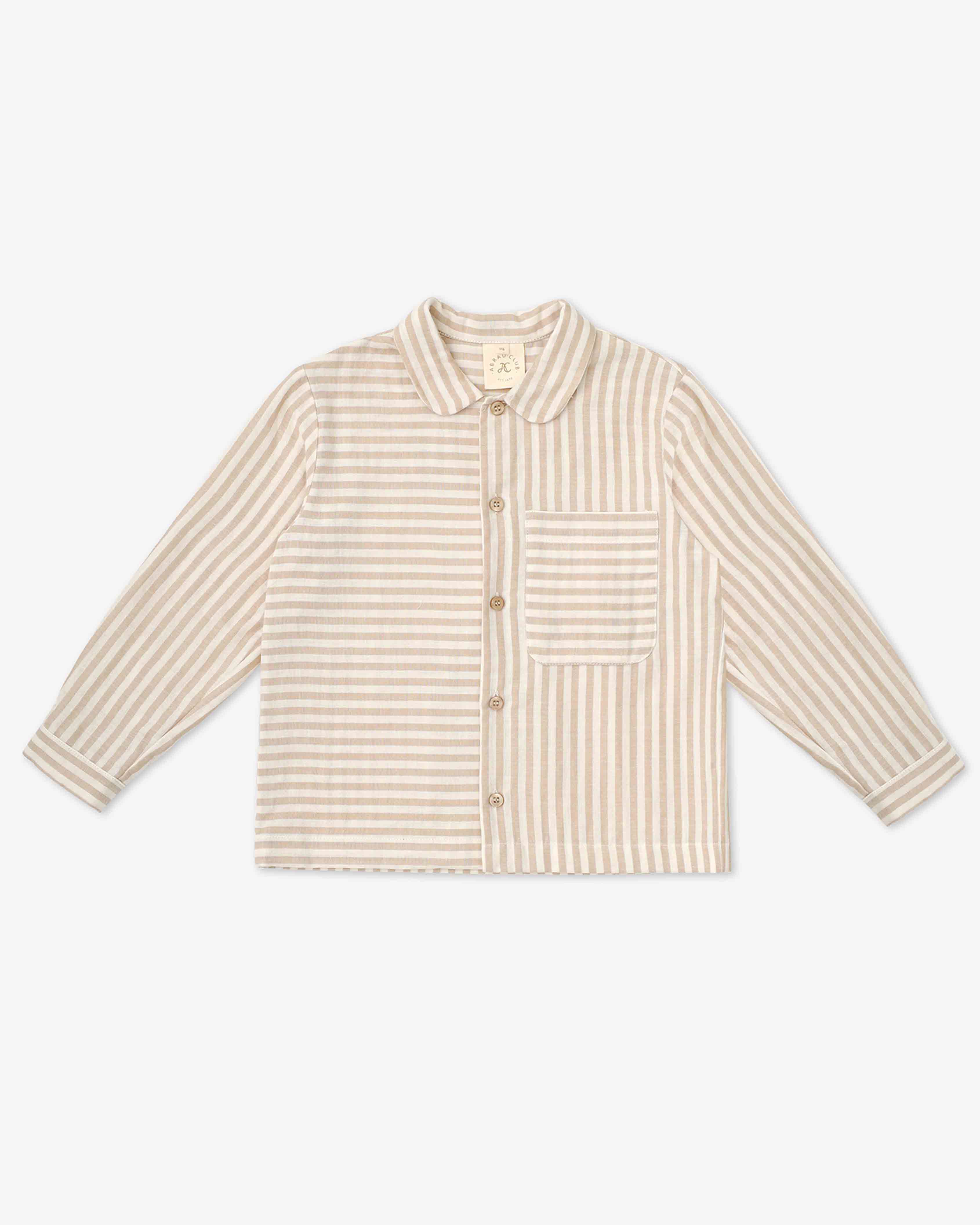 Детские брюки унисекс прямого кроя в полоску из муслина. Эластичный пояс. Передние карманы