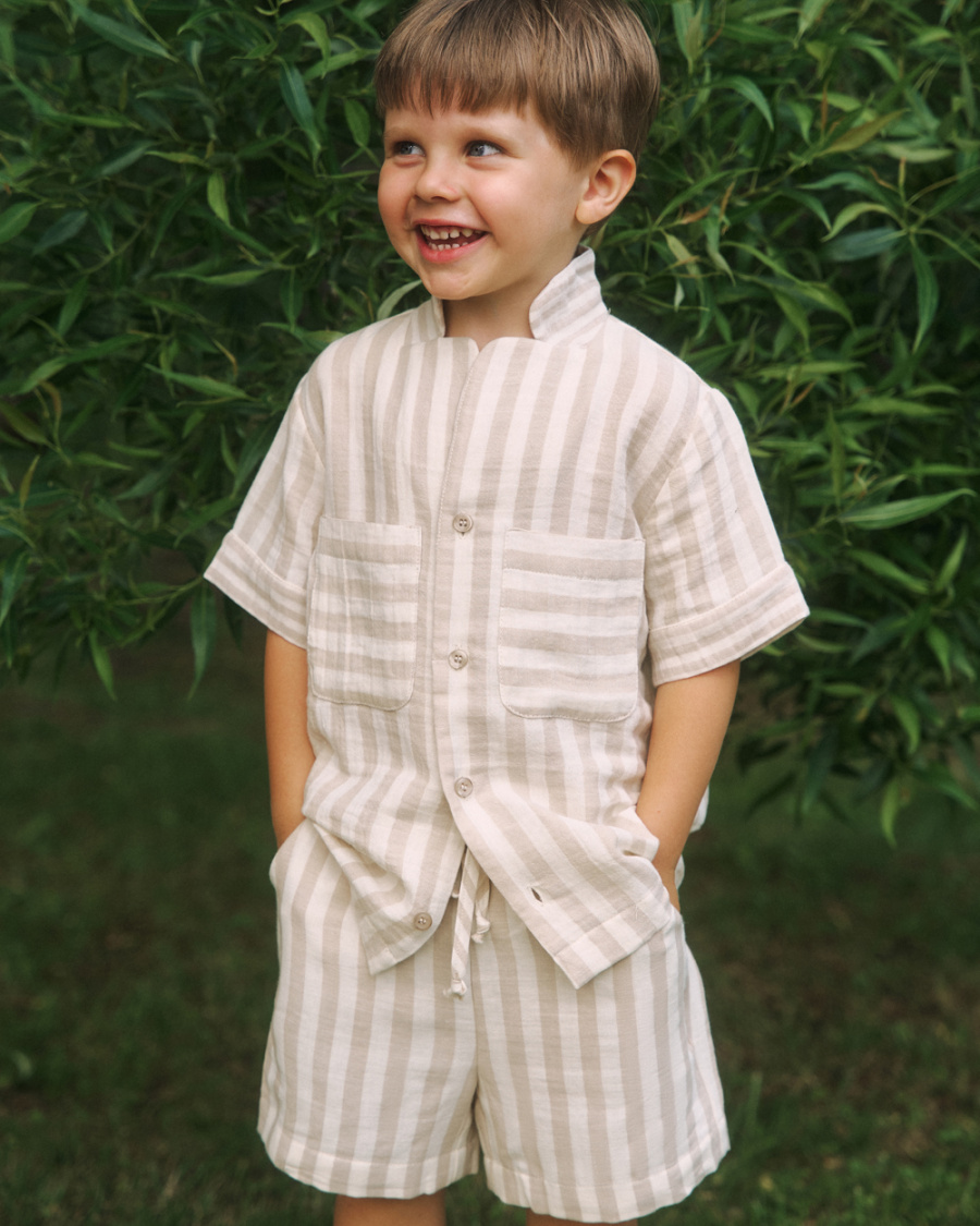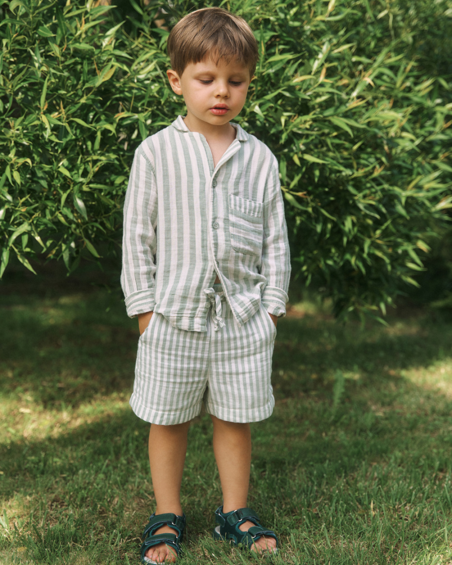 Детские шорты унисекс в полоску из муслина. Эластичный пояс. Передние карманы