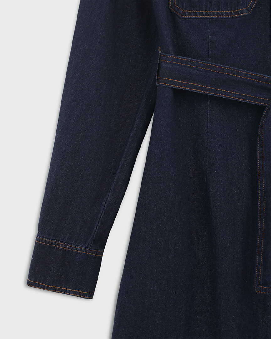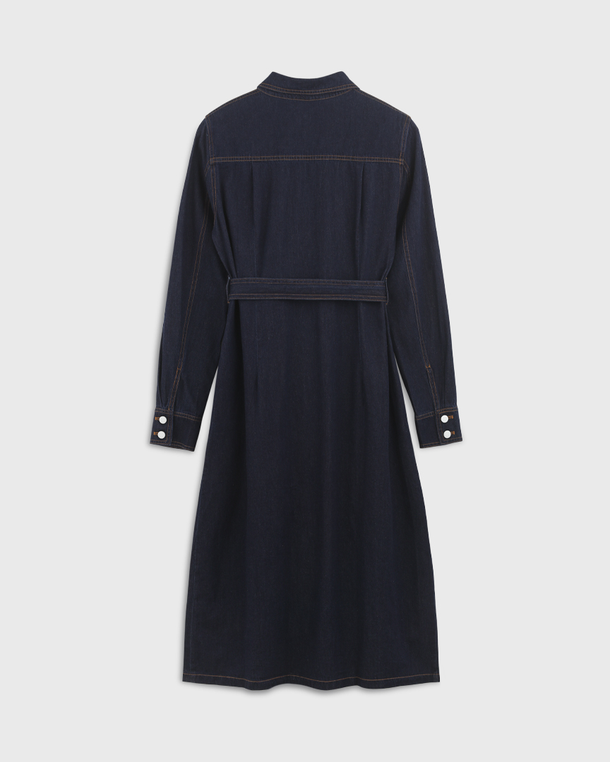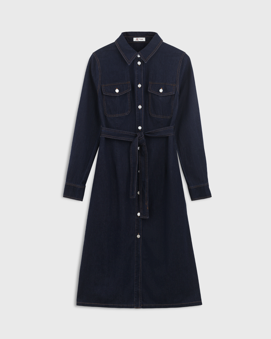Джинсовое платье на поясе, темно-синий