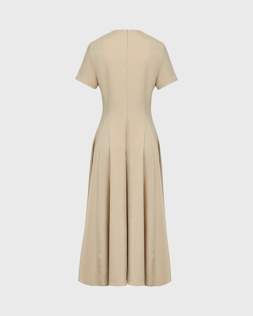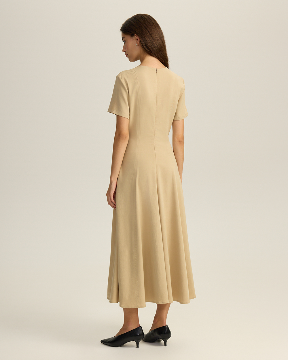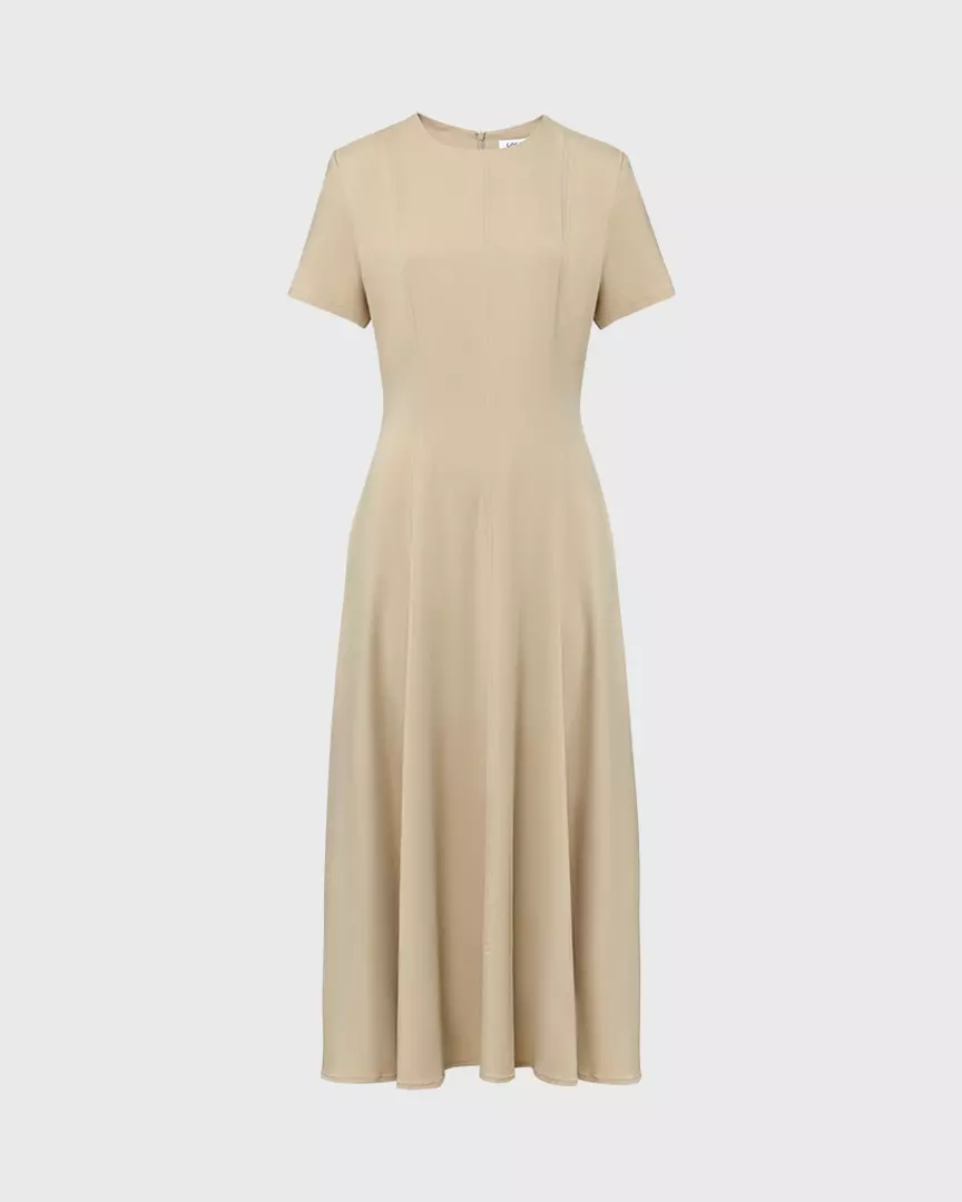 Платье приталенного кроя из лиоцелла и района. Круглый вырез. Короткие рукава. Застежка на молнию.