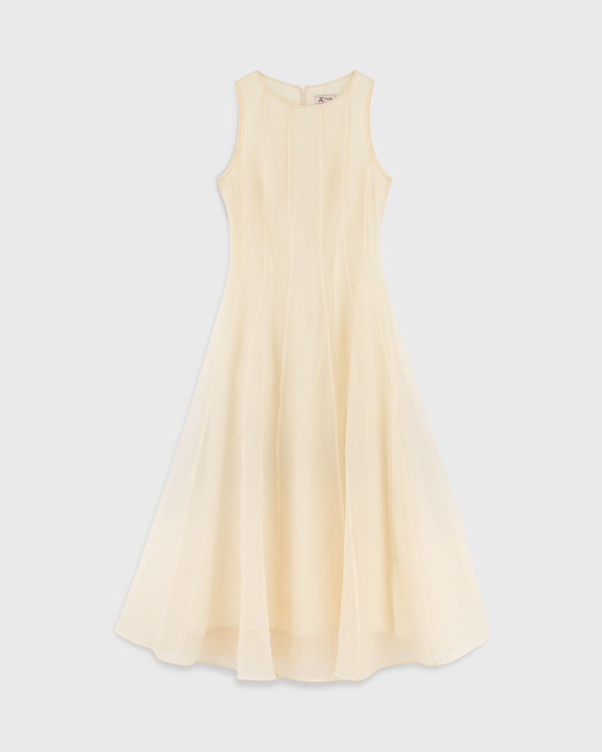 Воздушное приталенное платье из вуали, молочный