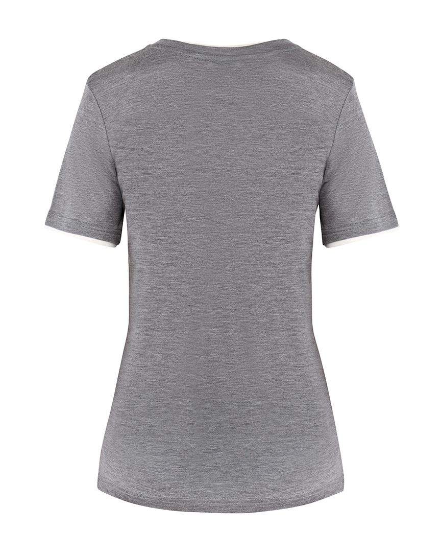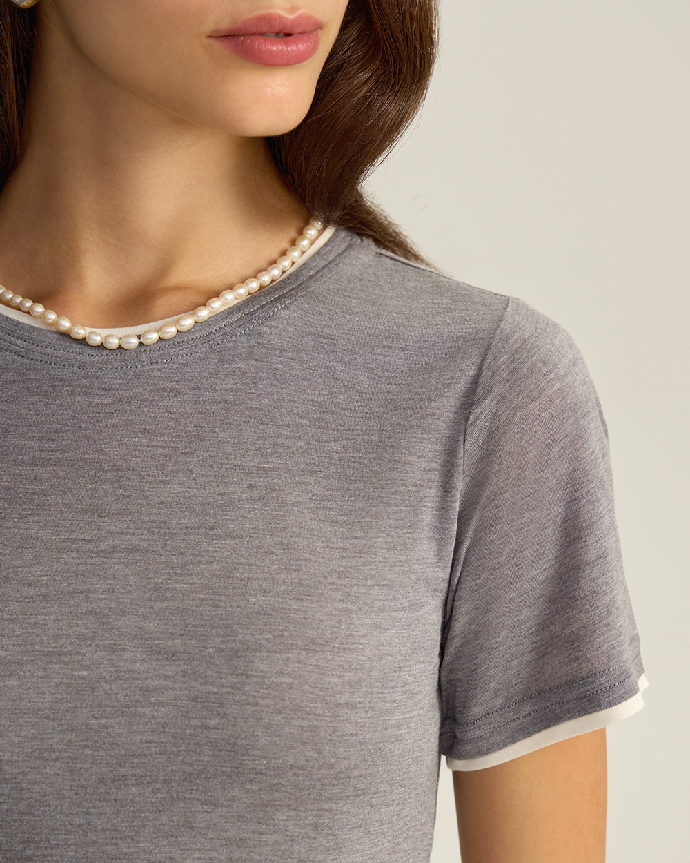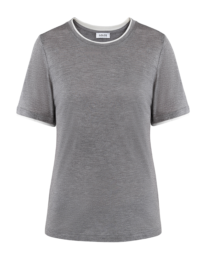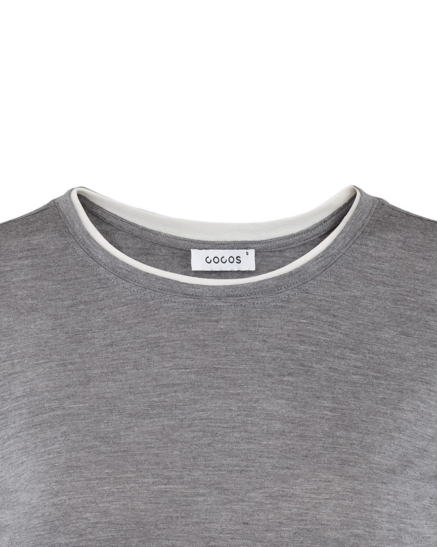 Вам нравится визуальный эффект многослойности, но вы не хотите носить две вещи одновременно? Тогда эту футболку мы создали специально для вас. Мы выбрали для нее мягкий, приятный к телу премиальный материал из модала с шелком и кашемиром, в базовом оттенке серый меланж и добавили контрастный белый кант по вороту и на рукавах, имитирующий нижний слой. Идеальный комфорт и актуальный эффект многослойности, как заказывали.