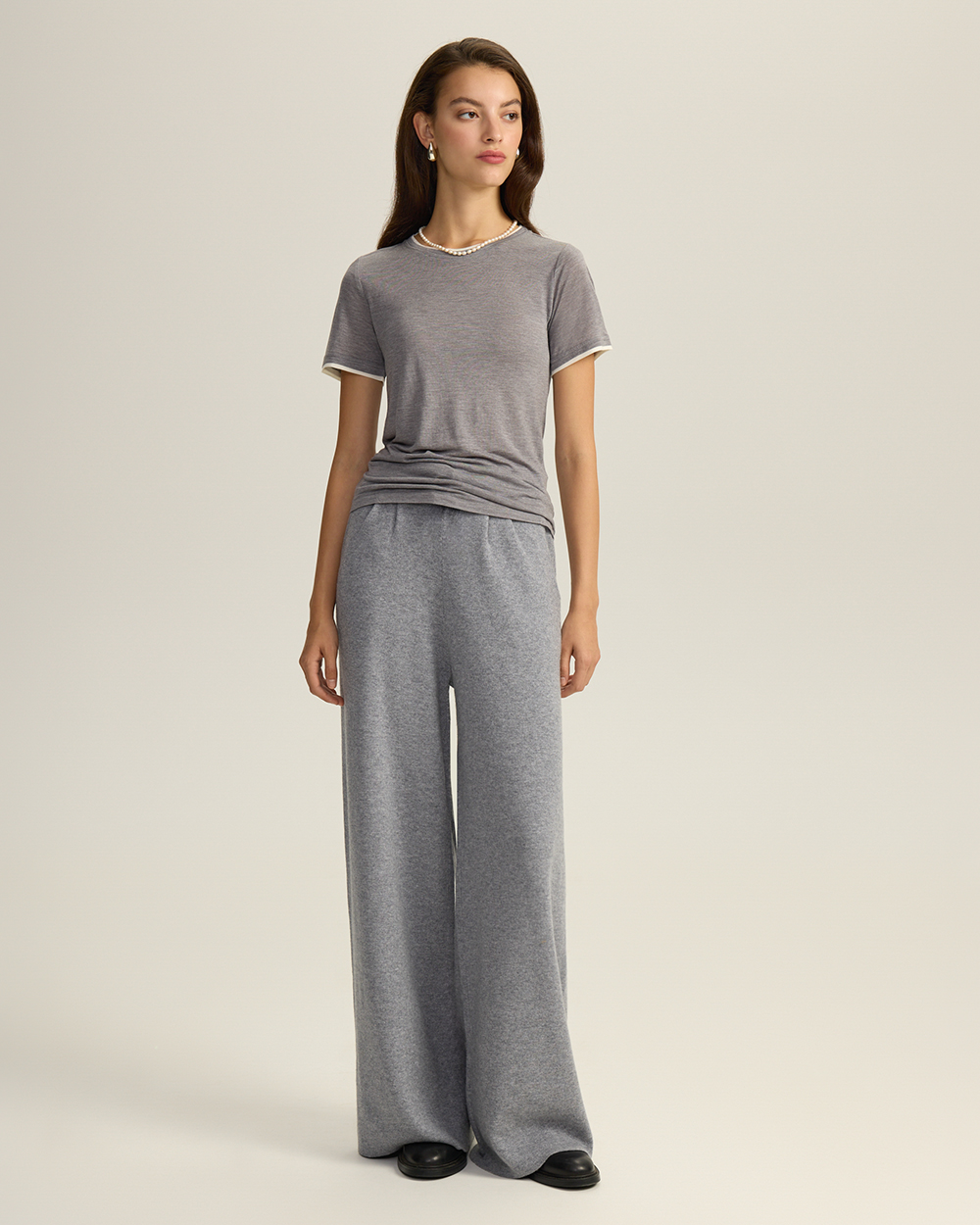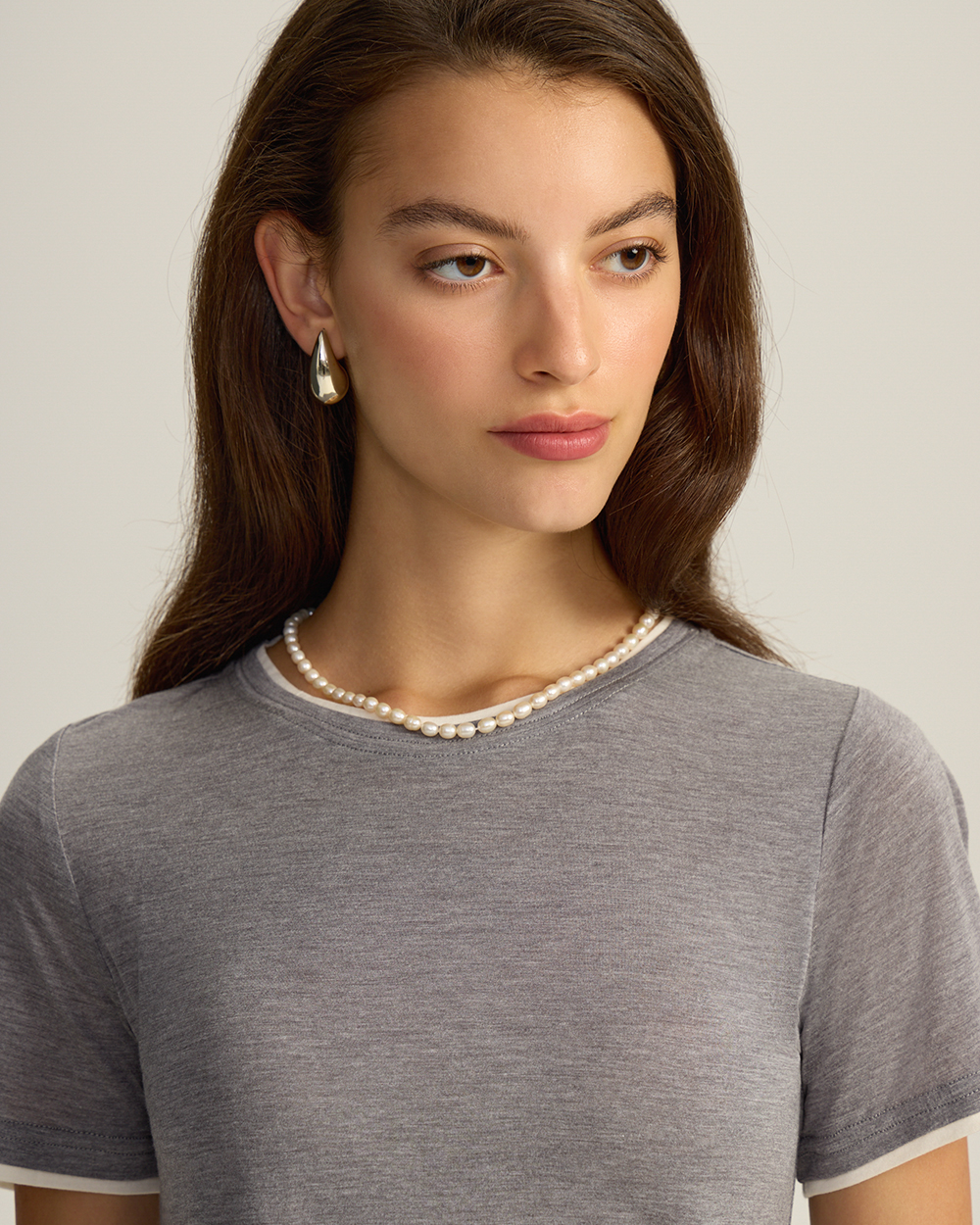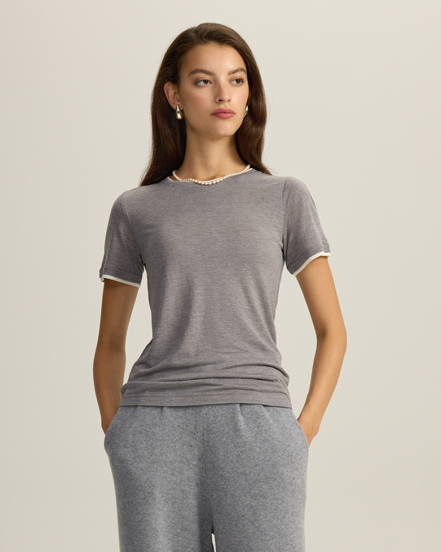 Вам нравится визуальный эффект многослойности, но вы не хотите носить две вещи одновременно? Тогда эту футболку мы создали специально для вас. Мы выбрали для нее мягкий, приятный к телу премиальный материал из модала с шелком и кашемиром, в базовом оттенке серый меланж и добавили контрастный белый кант по вороту и на рукавах, имитирующий нижний слой. Идеальный комфорт и актуальный эффект многослойности, как заказывали.