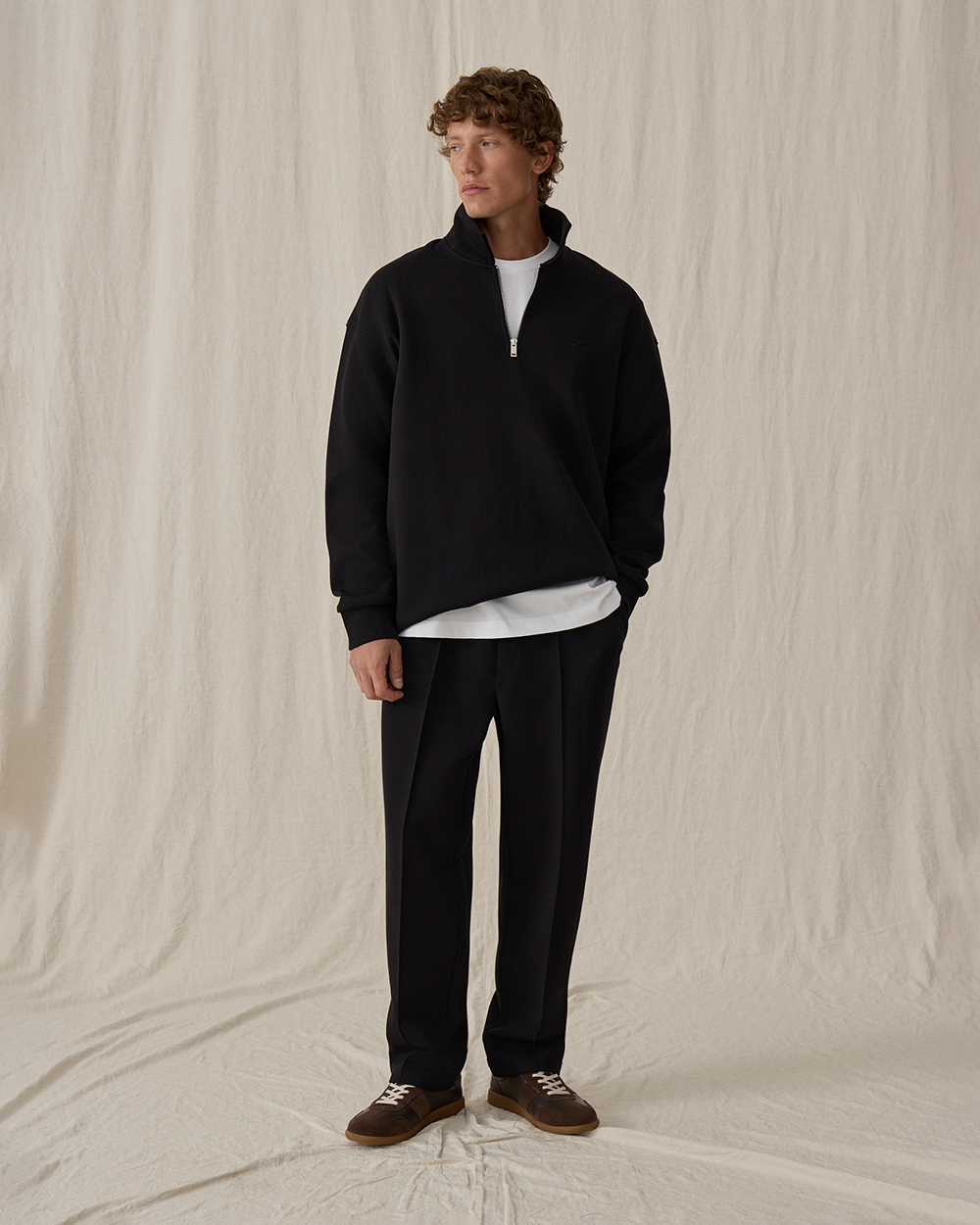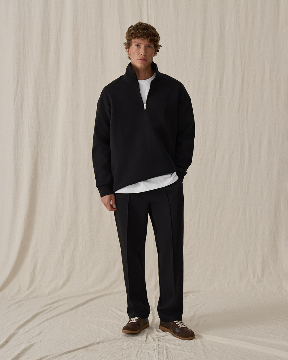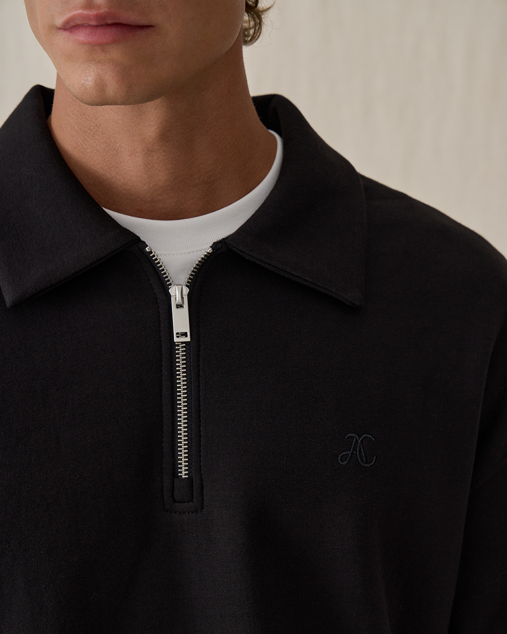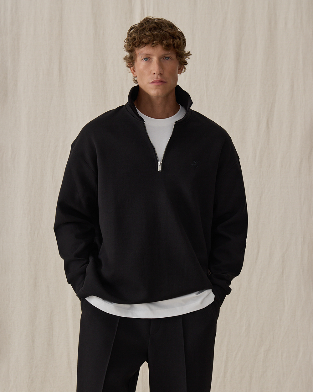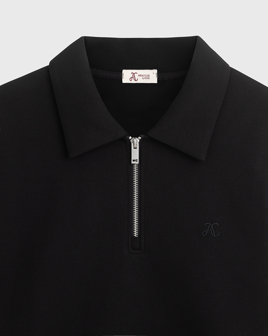 Свитшот-поло, с отложным воротником и застежкой на короткую молнию на вороте. Модель из смесового хлопка, комфортного и практичного в уходе. Вышивка монограммы Abrau Club.