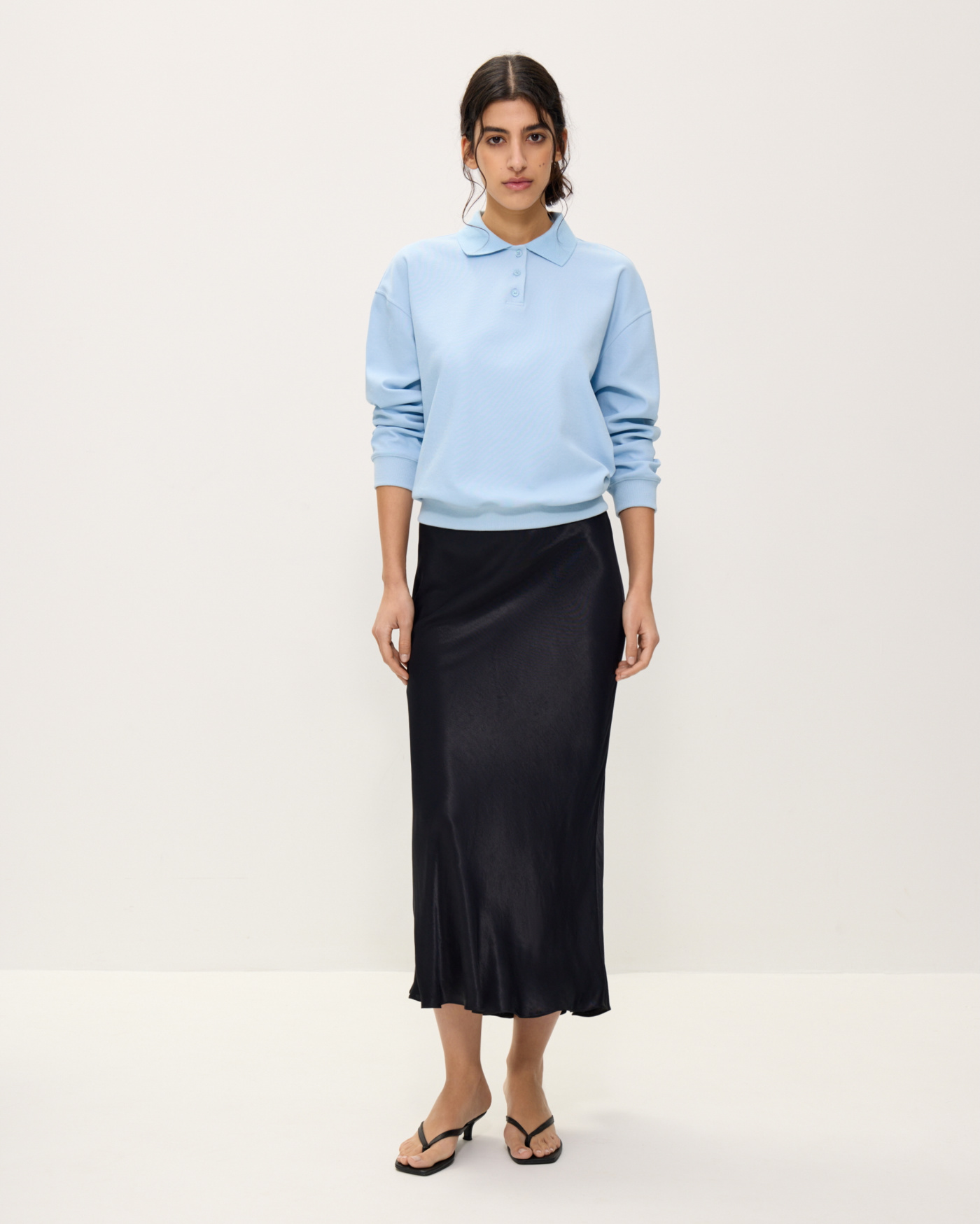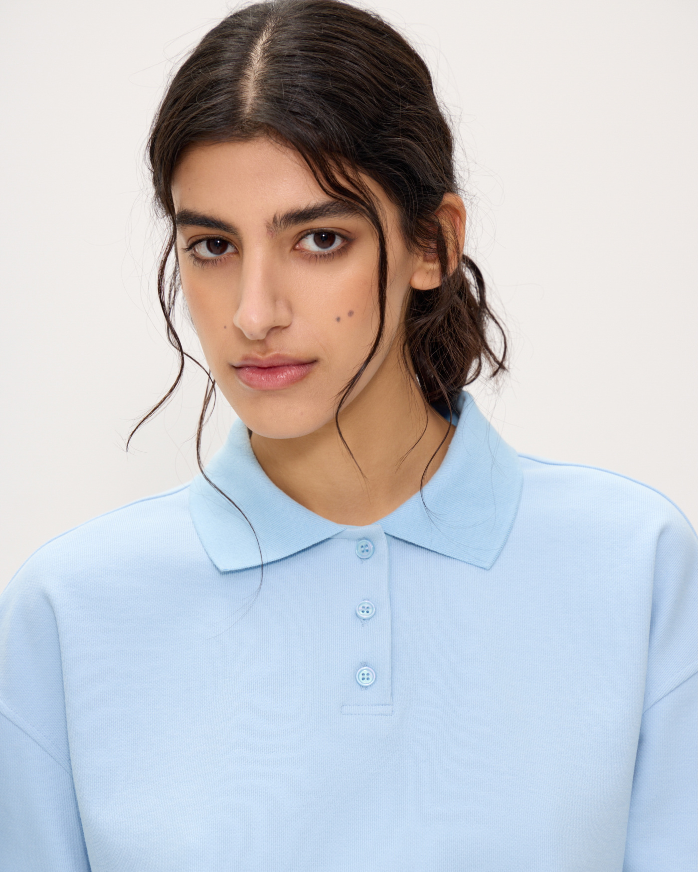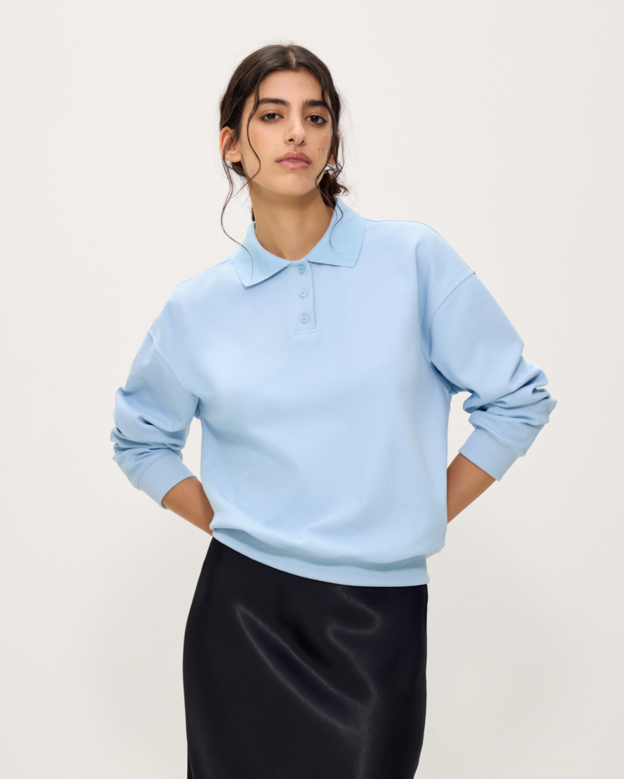 Футболки поло давно являются классикой и базой гардероба, но в последнее время подиумный тренд на воротник поло находит воплощение в самых разных формах. В этом сезоне предлагаем объемный свитшот с воротником поло. Попробуйте его в сочетании с белой Приталенной футболкой Slim Fit — пусть она выглядывает из-под расстегнутого воротника.