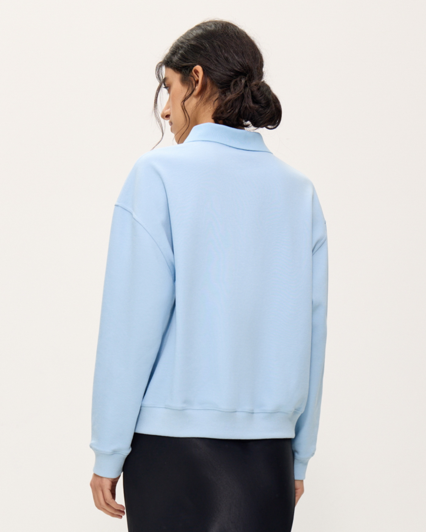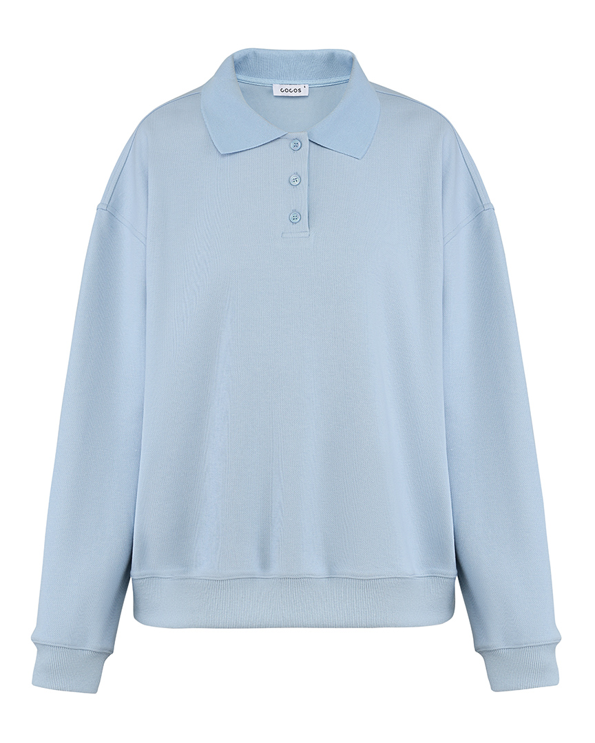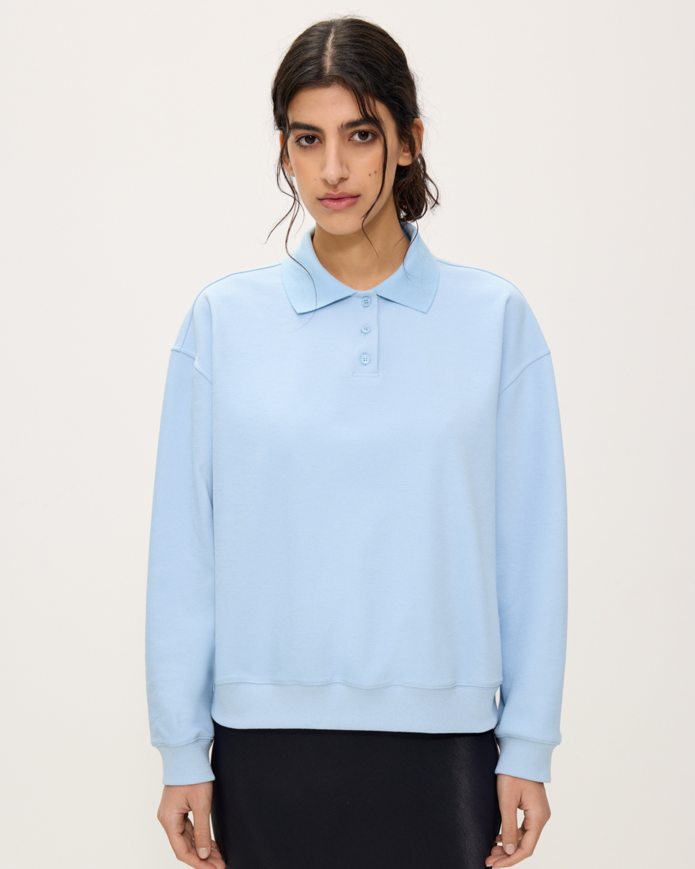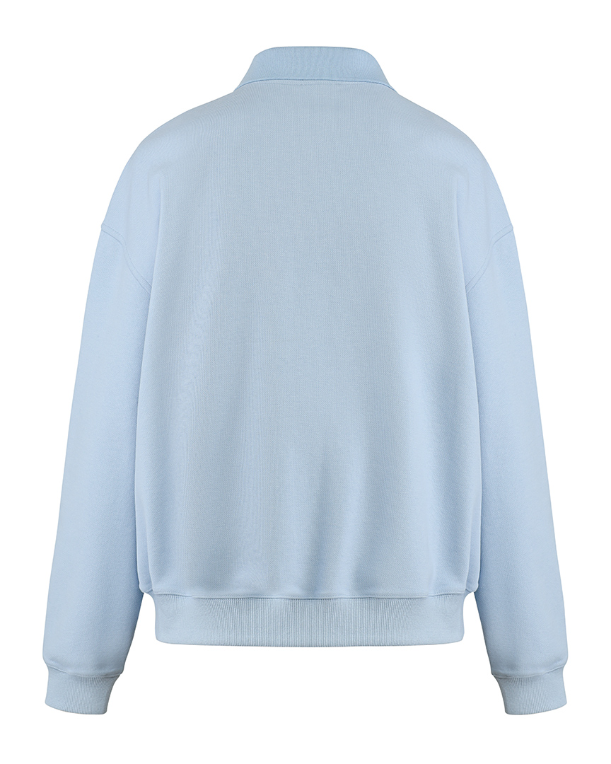 Толстовка свободной посадки из хлопкового футера с фактурной изнанкой. Воротник поло. Эластичные пояс и манжеты.