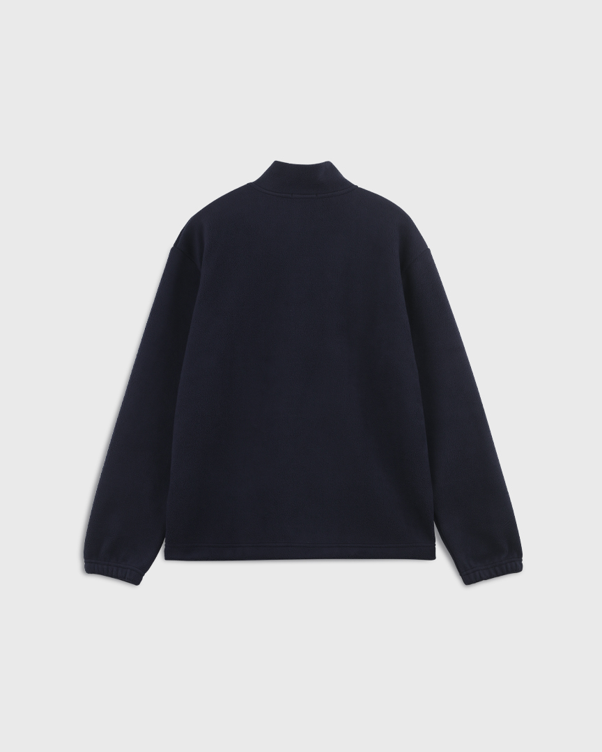 Толстовка унисекс свободного кроя из флиса шерпа с меховым эффектом. Воротник-стойка, застежка на короткую молнию. Стопперы по бокам для регулирования посадки. Вышивка спереди.