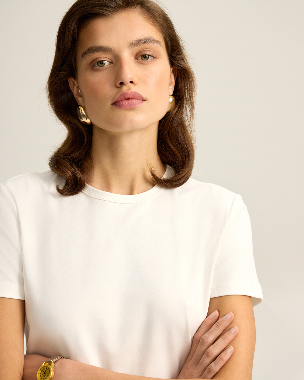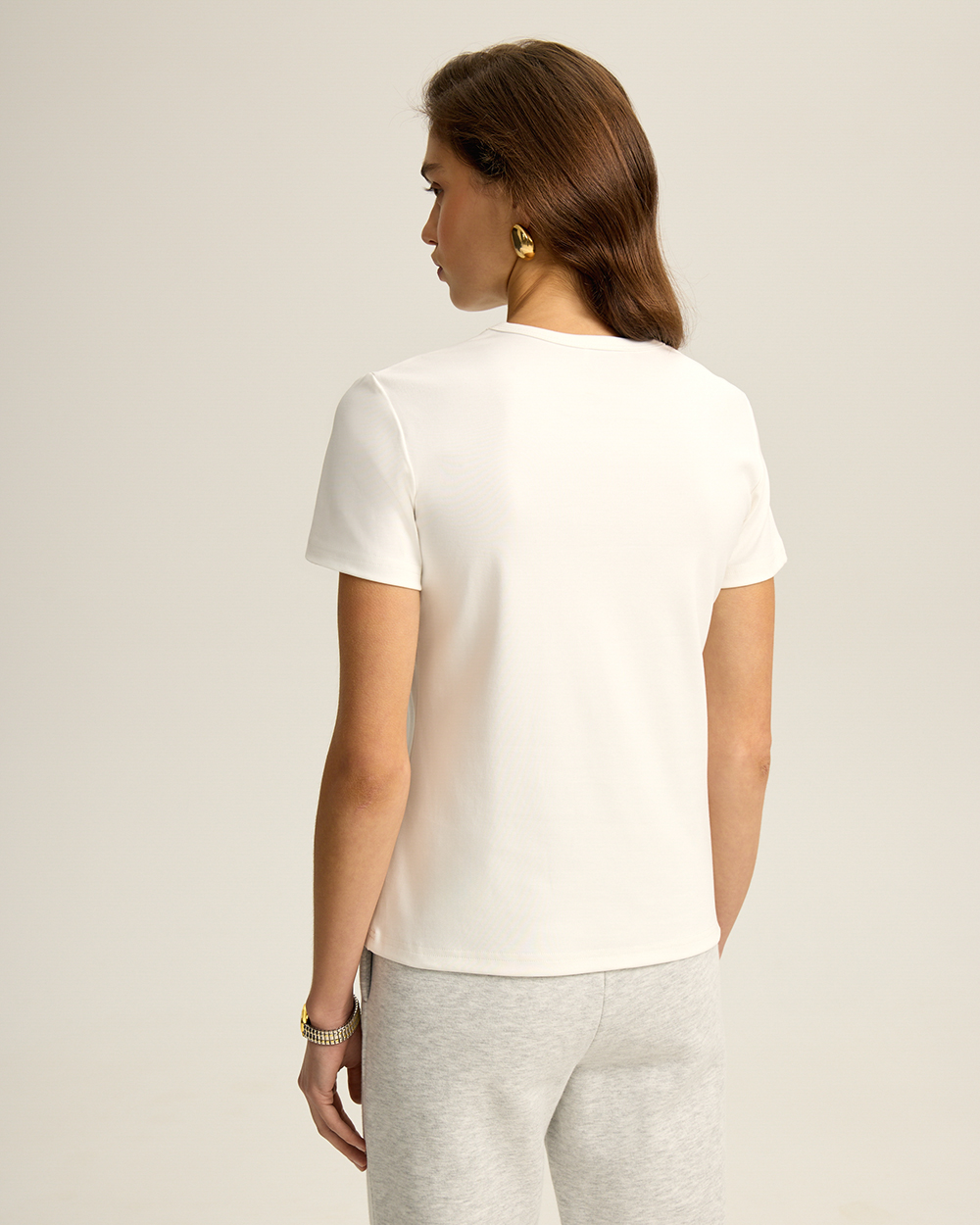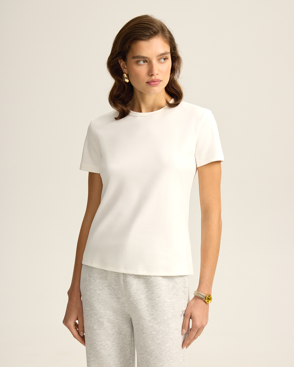 Базовая футболка из хлопка и спандекса, молочный