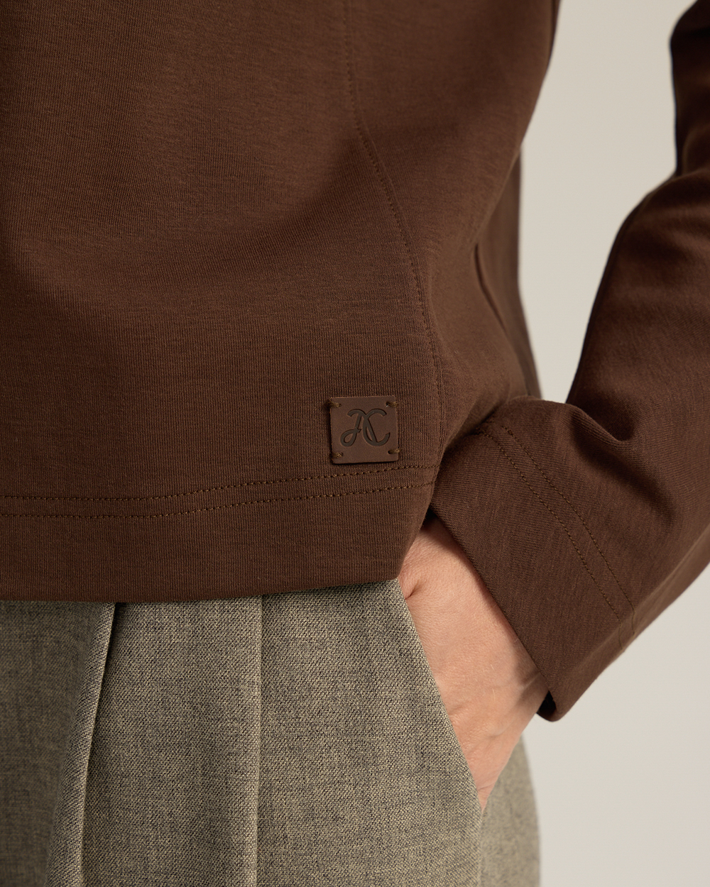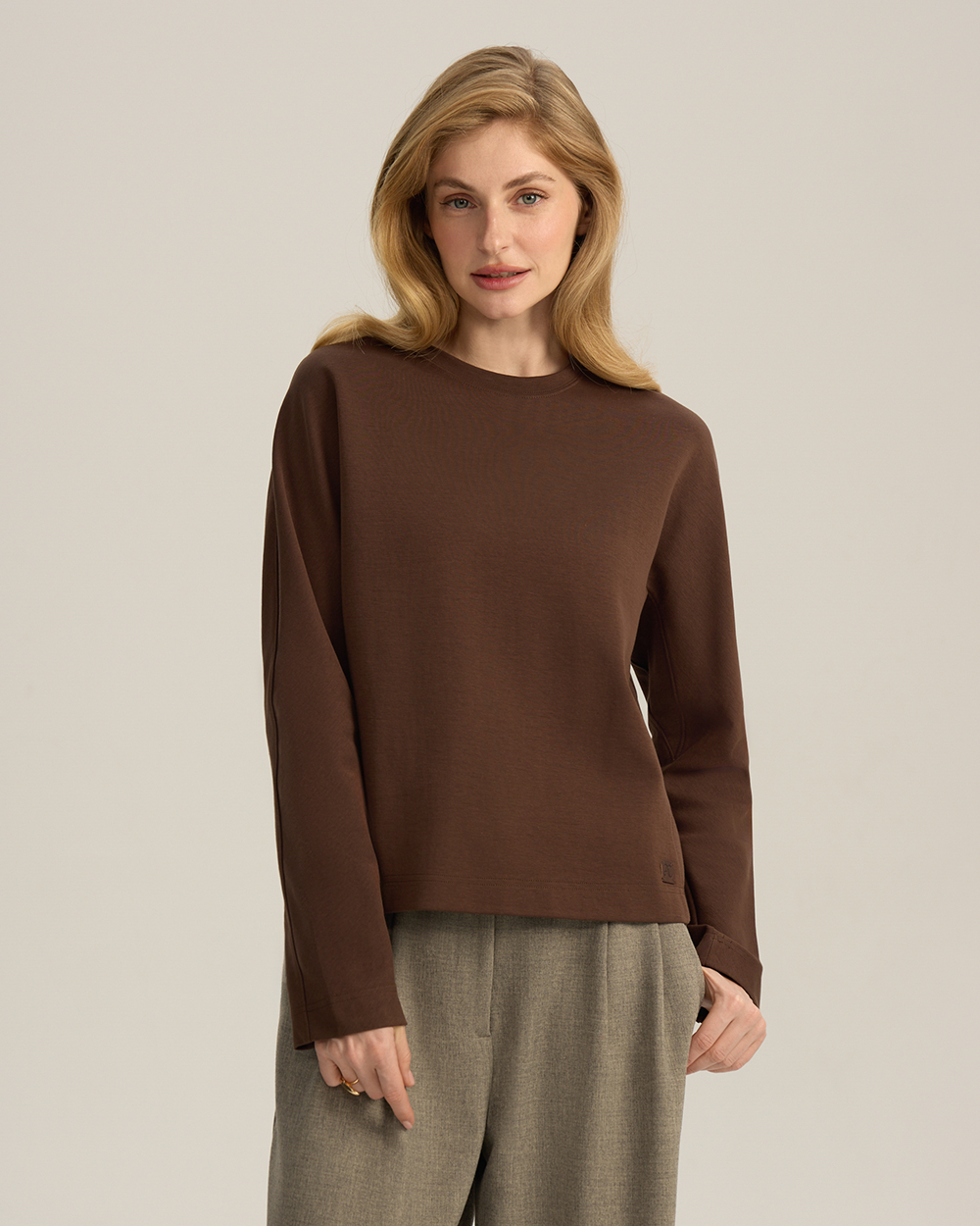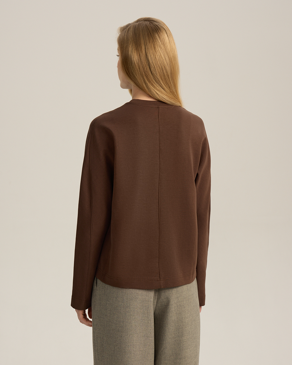 Лонгслив с цельнокроеным рукавом, коричневый