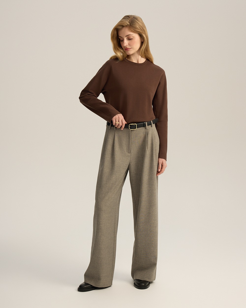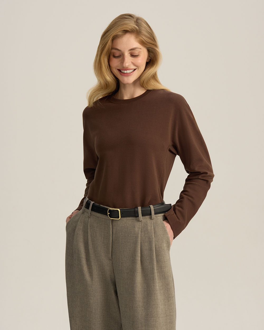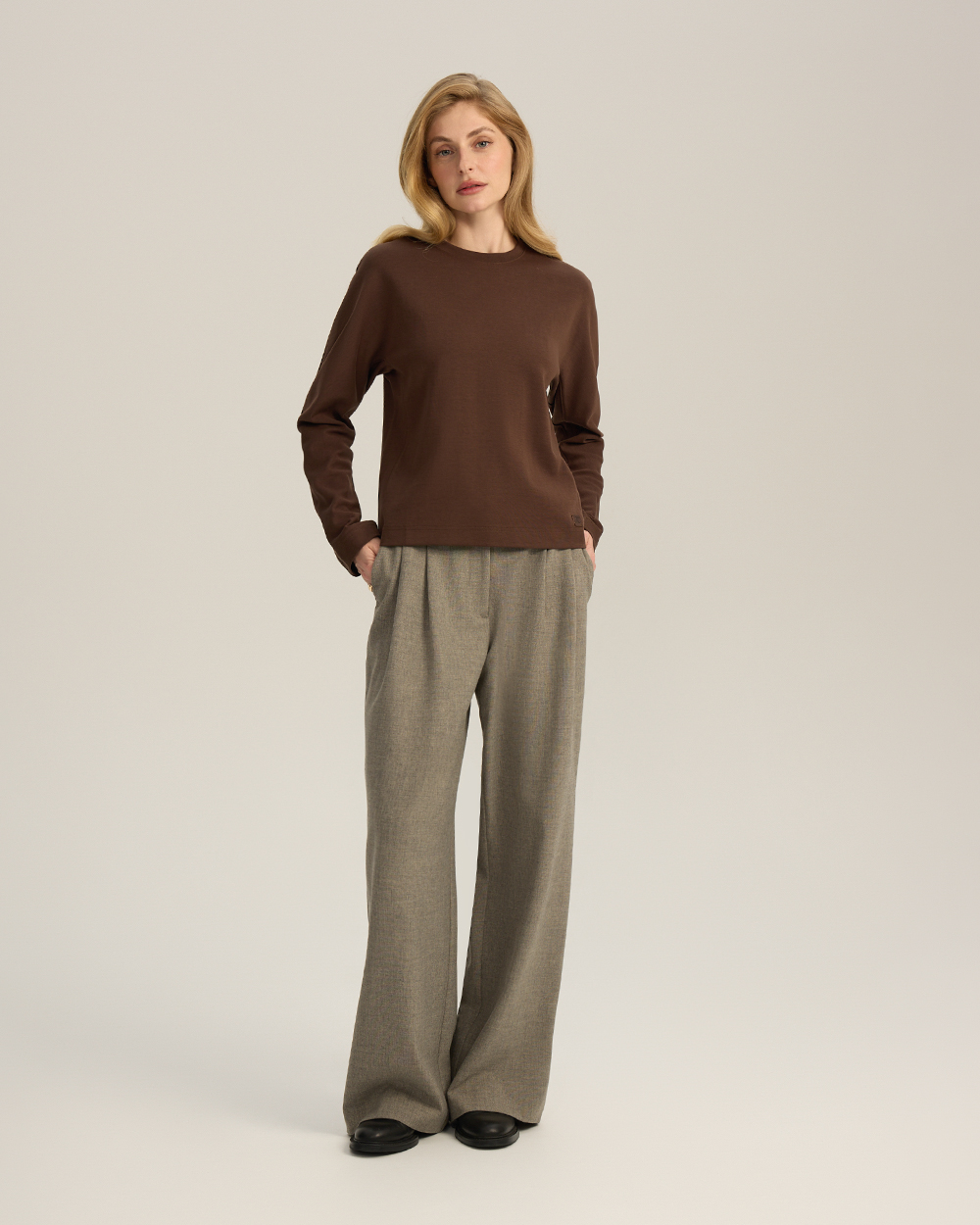 Лонгслив с цельнокроеным рукавом, коричневый