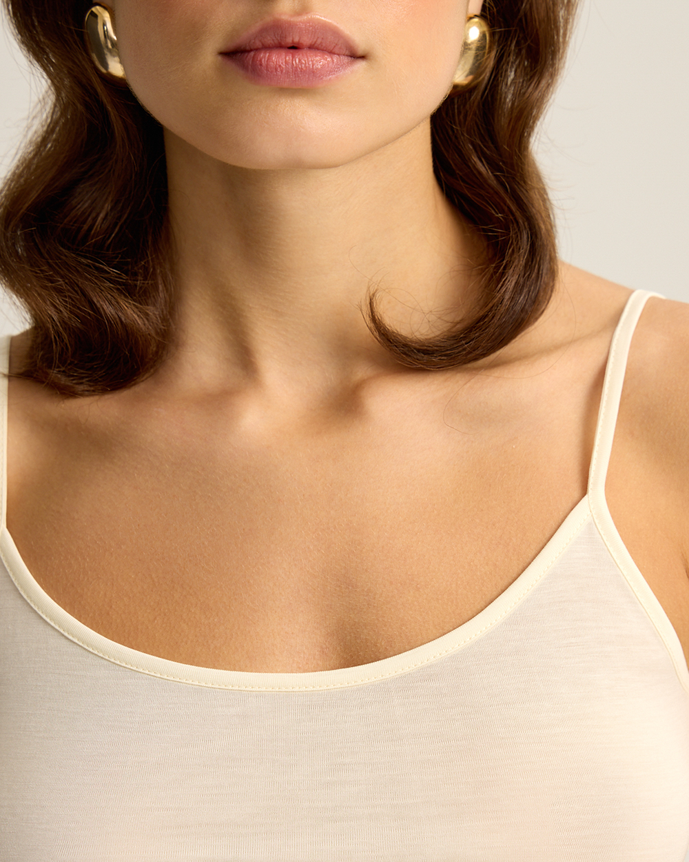 Базовый топ приталенного кроя из лиоцелла. Круглый вырез. Тонкие бретели.