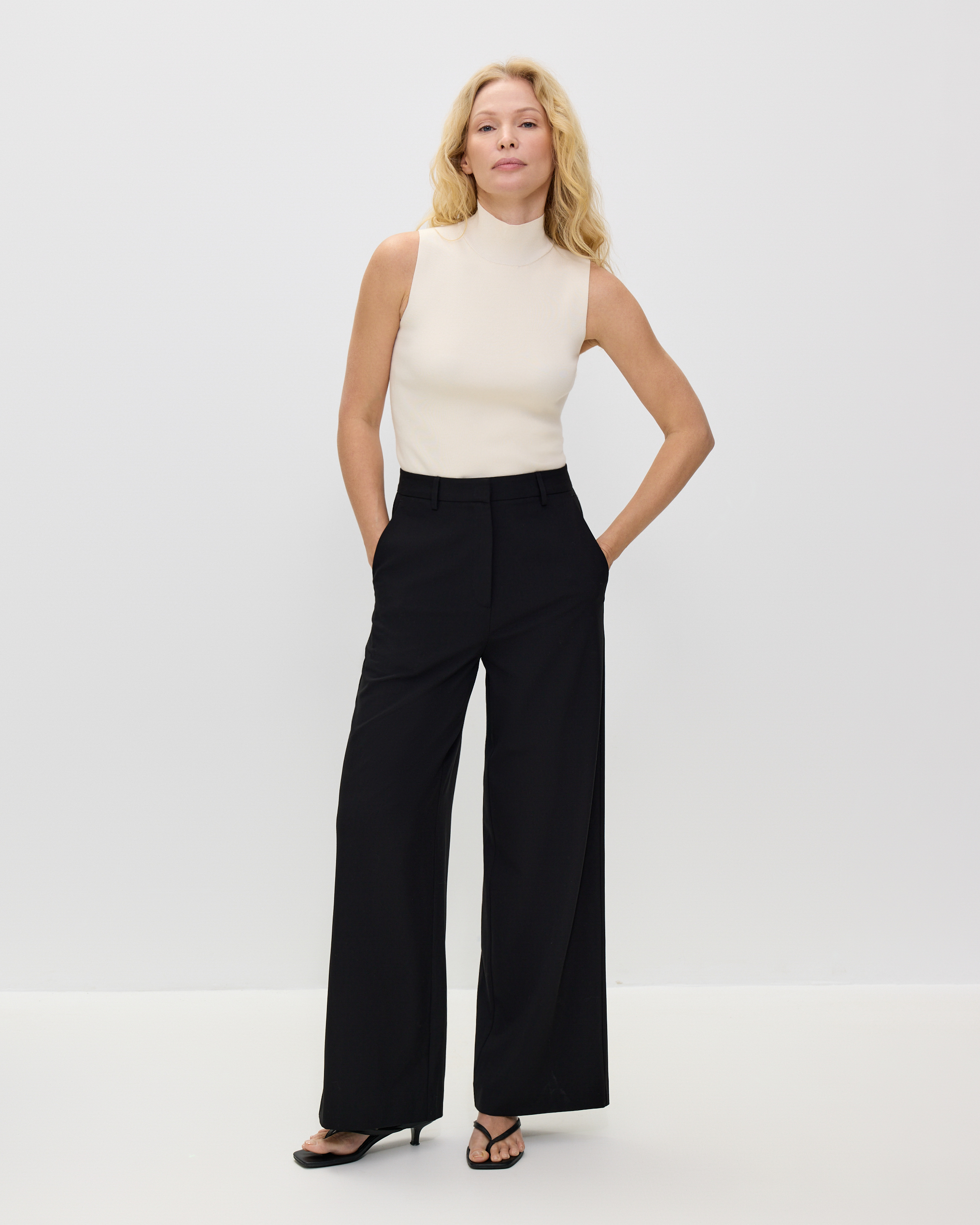Облегающий топ из вискозного трикотажа. Круглый вырез. Воротник-стойка.